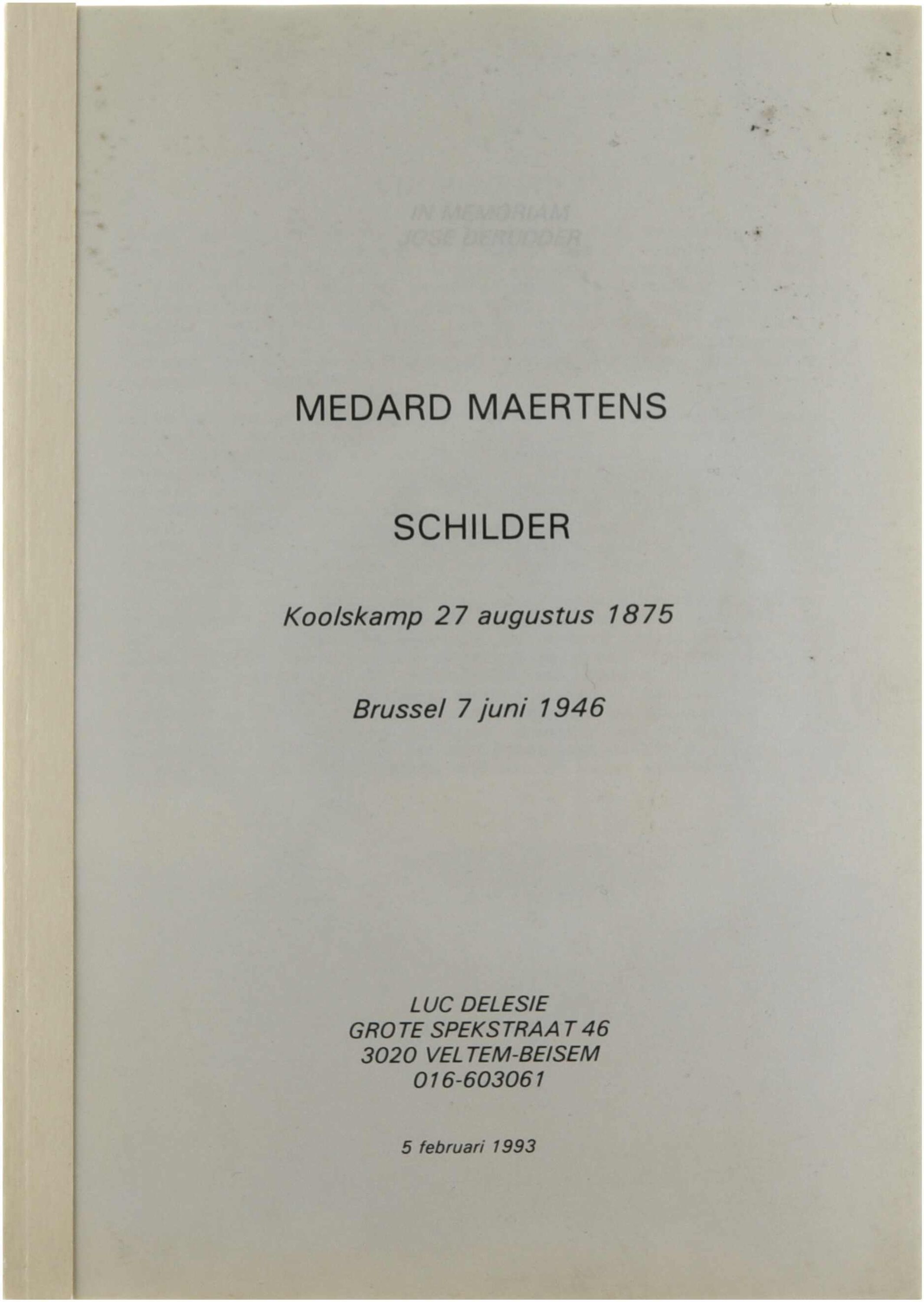 Medard Maertens, schilder. Koolskamp 27 augustus 1875- Brussel 7 juni 1946