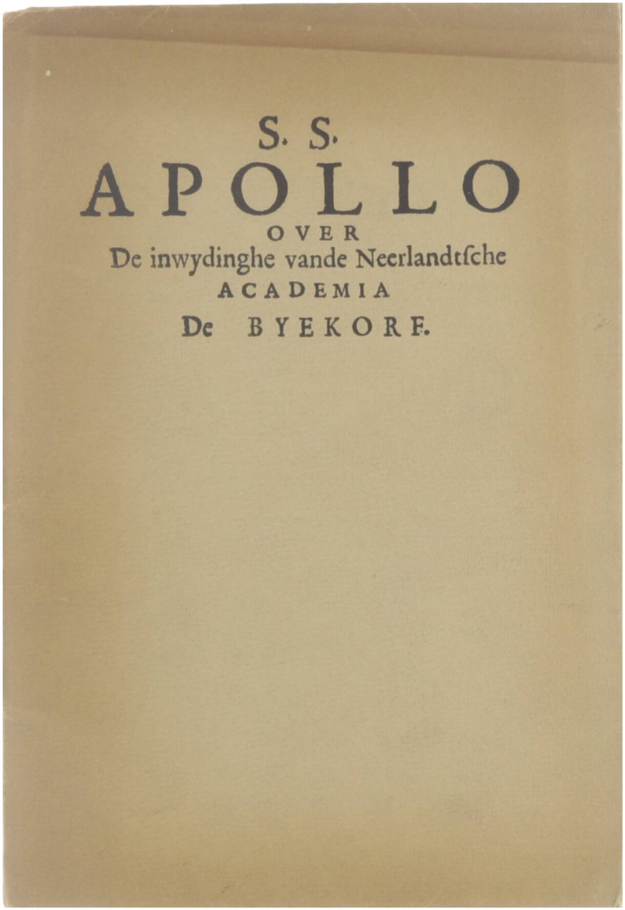 Apollo over de inwijdinghe vande neerlandtsche academia de Byekorf