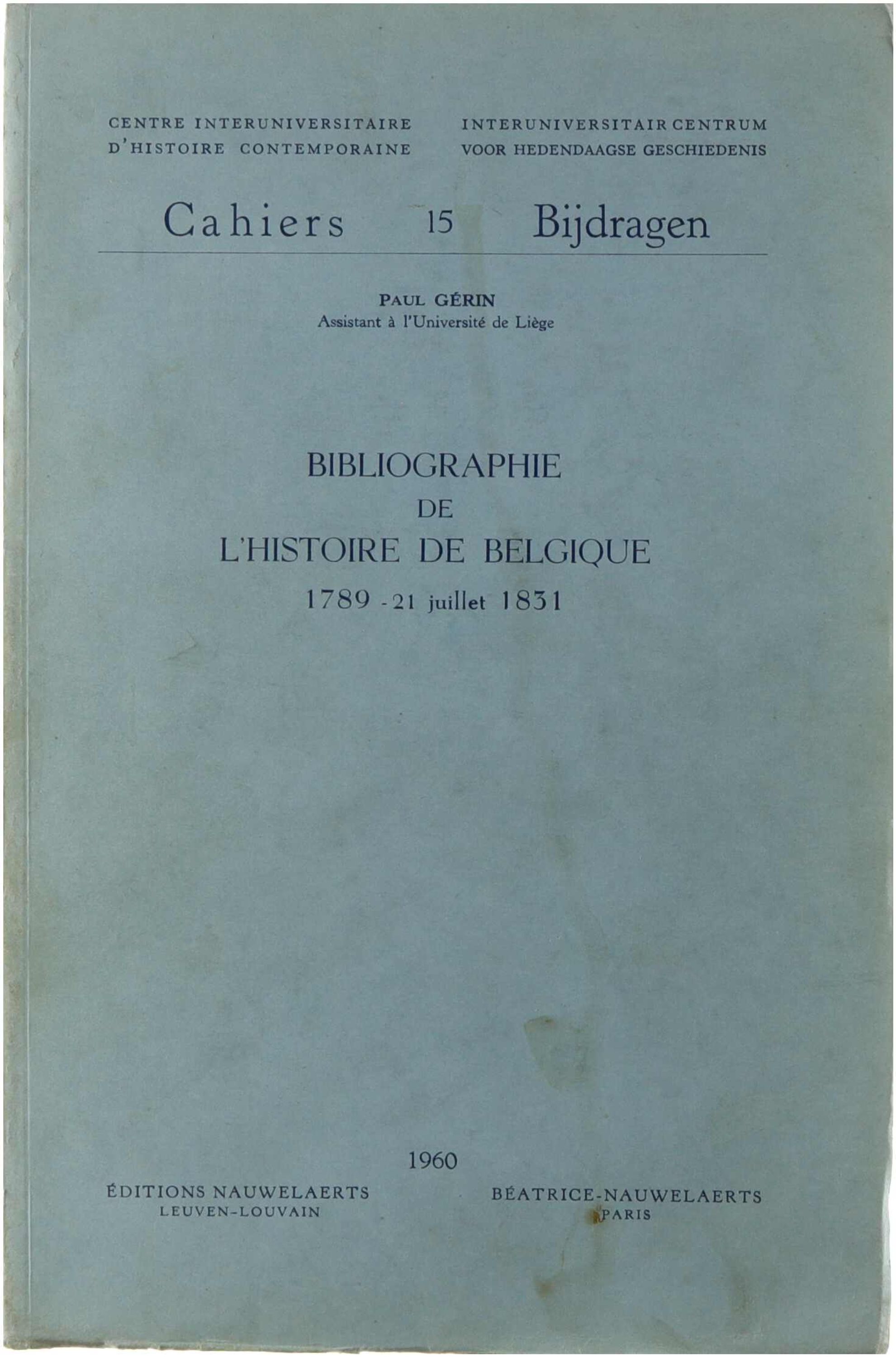 Bibliographie de l'histoire de Belgique 1789 - 21 juillet 1851