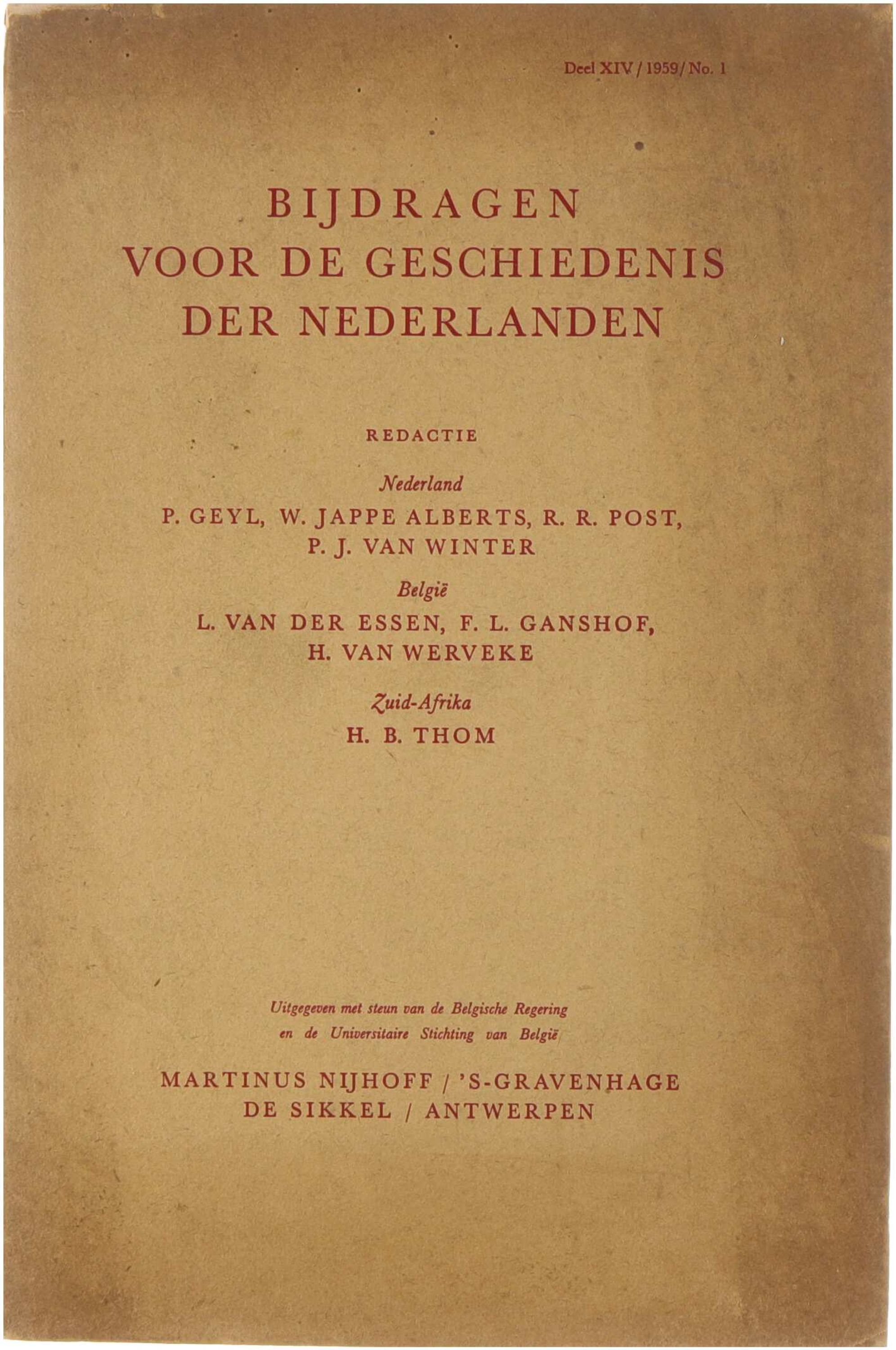 Bijdragen voor de geschiedenis der Nederlanden (14 n°.1)