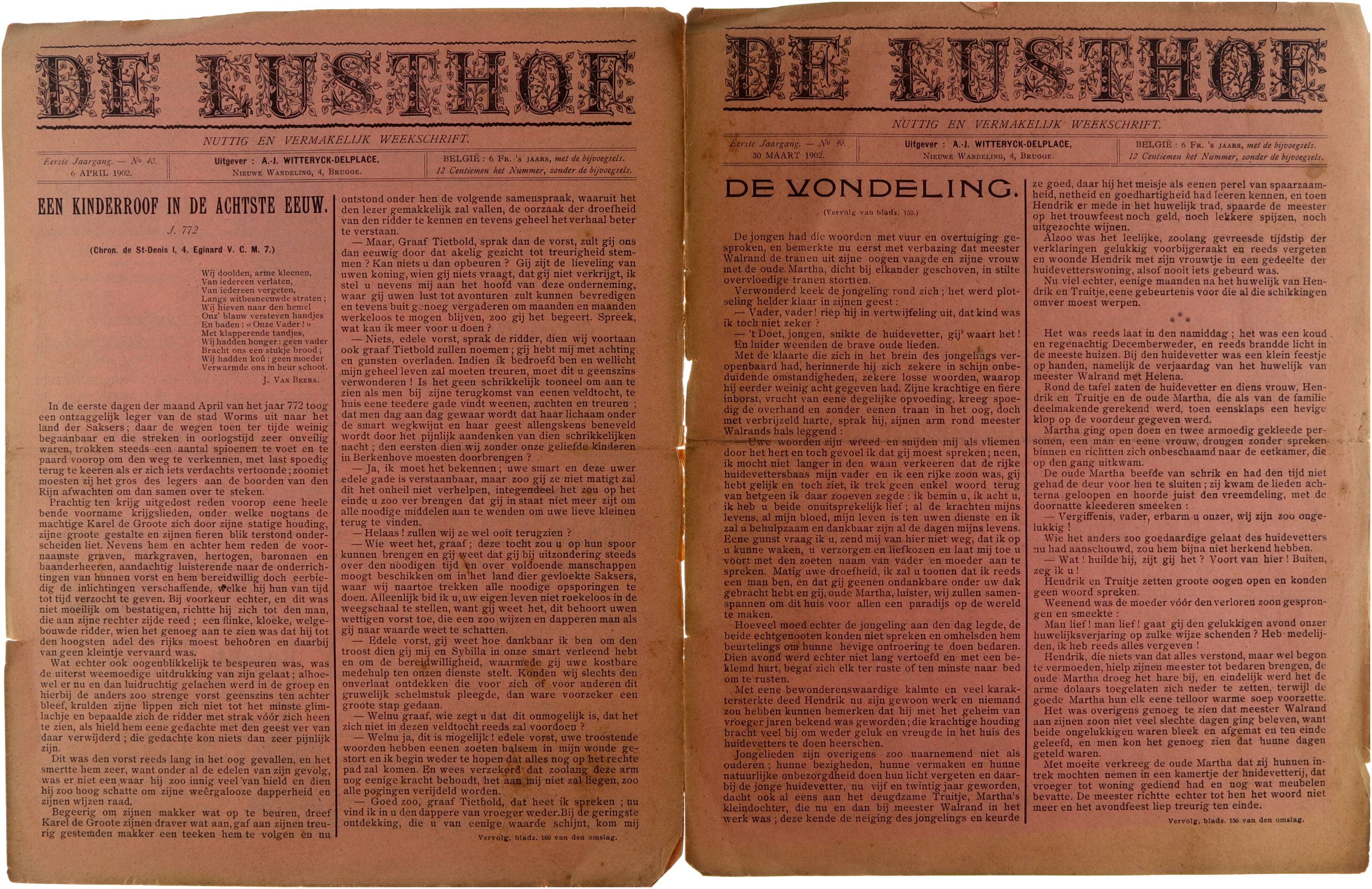 Bijvoegsel aan De lusthof. Nuttig en vermakelijk weekschrift (van 30 maart 1902 t.e.m. 6 april 1902) 2 nummers