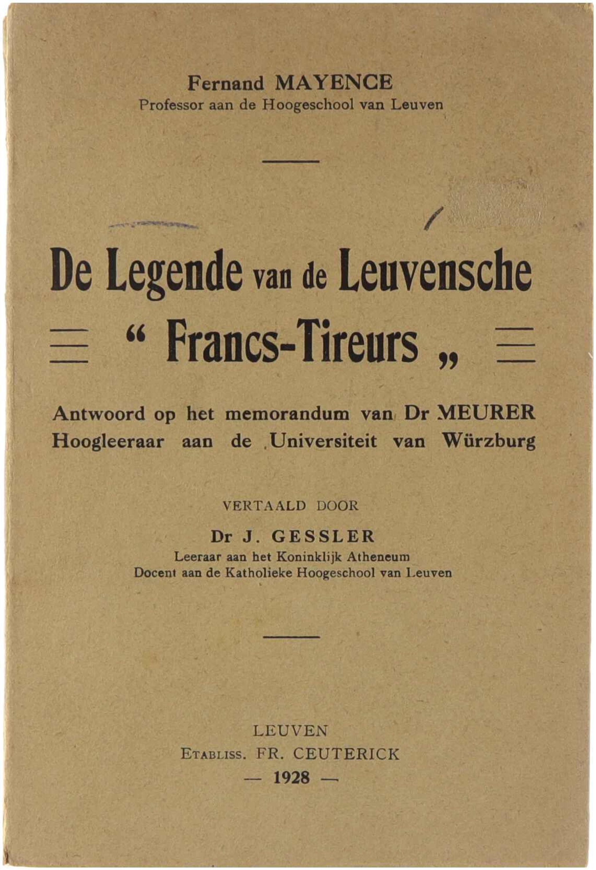 De Legende van de Leuvensche "Francs-Tireurs". Antwoord op het memorandum van Dr. Meurer, hoogleeraar aan de Universiteit van Würzburg