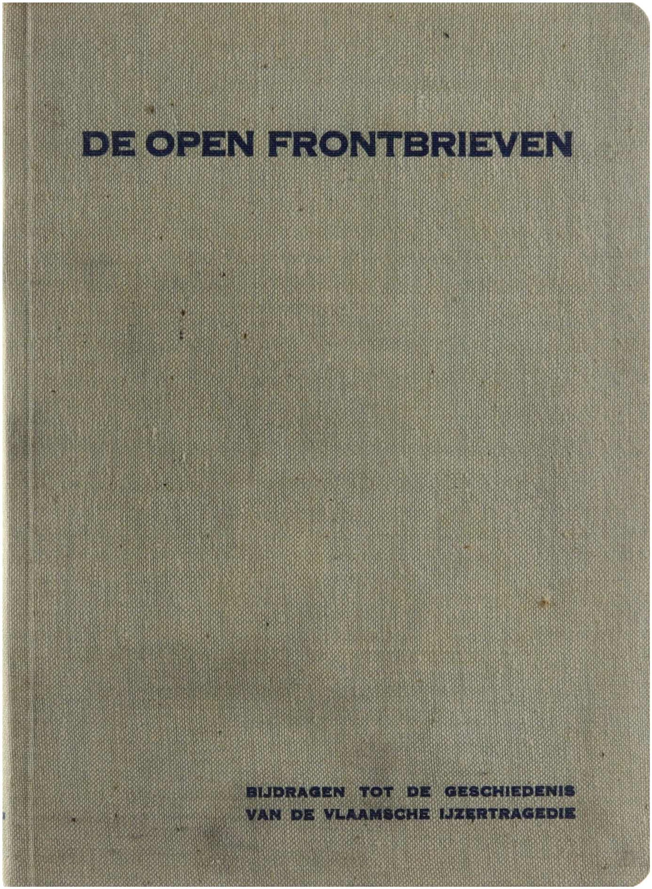 Deze bundel bevat een verzameling van de zogenaamde Open Frontbrieven en aanverwante vertoogschriften die tijdens de Eerste Wereldoorlog (1917-1918) door de Vlaamse Frontbeweging werden verspreid aan de IJzerfrontlinie. Het zijn politieke manifesten waarin de beweging haar eisen, kritiek op taaltoestanden in het leger en pleidooien voor Vlaamse belangen formuleerde. De brieven illustreren de flamingantische agitatie achter de frontlinie en vormen een historisch document voor de Vlaamse strijd aan de IJzer.
