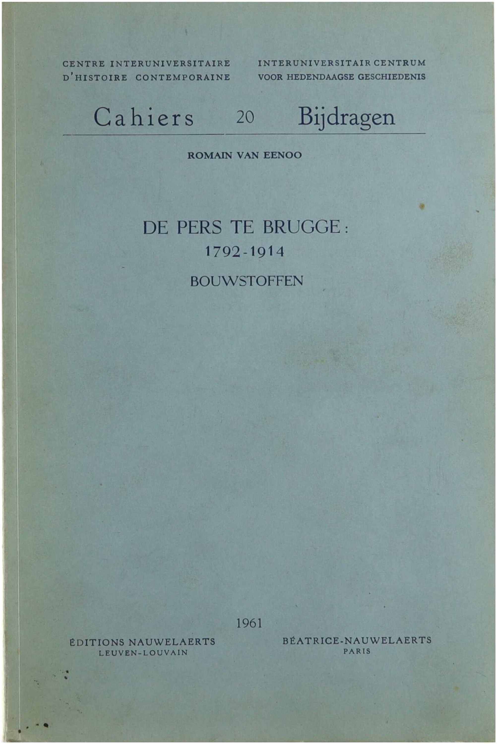 De pers te Brugge 1792-1914 Bouwstoffen