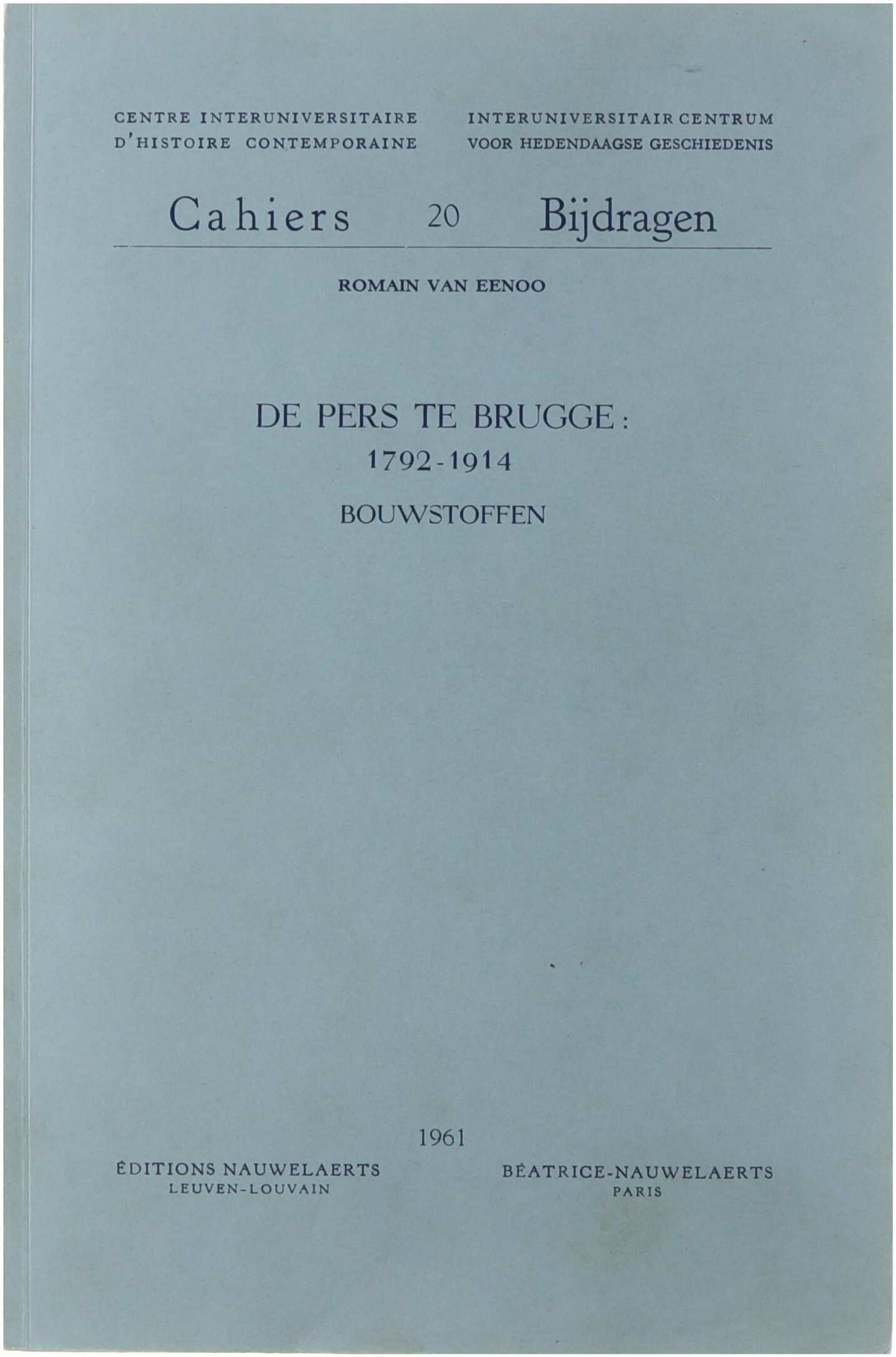 De pers te Brugge: 1792-1914 bouwstoffen