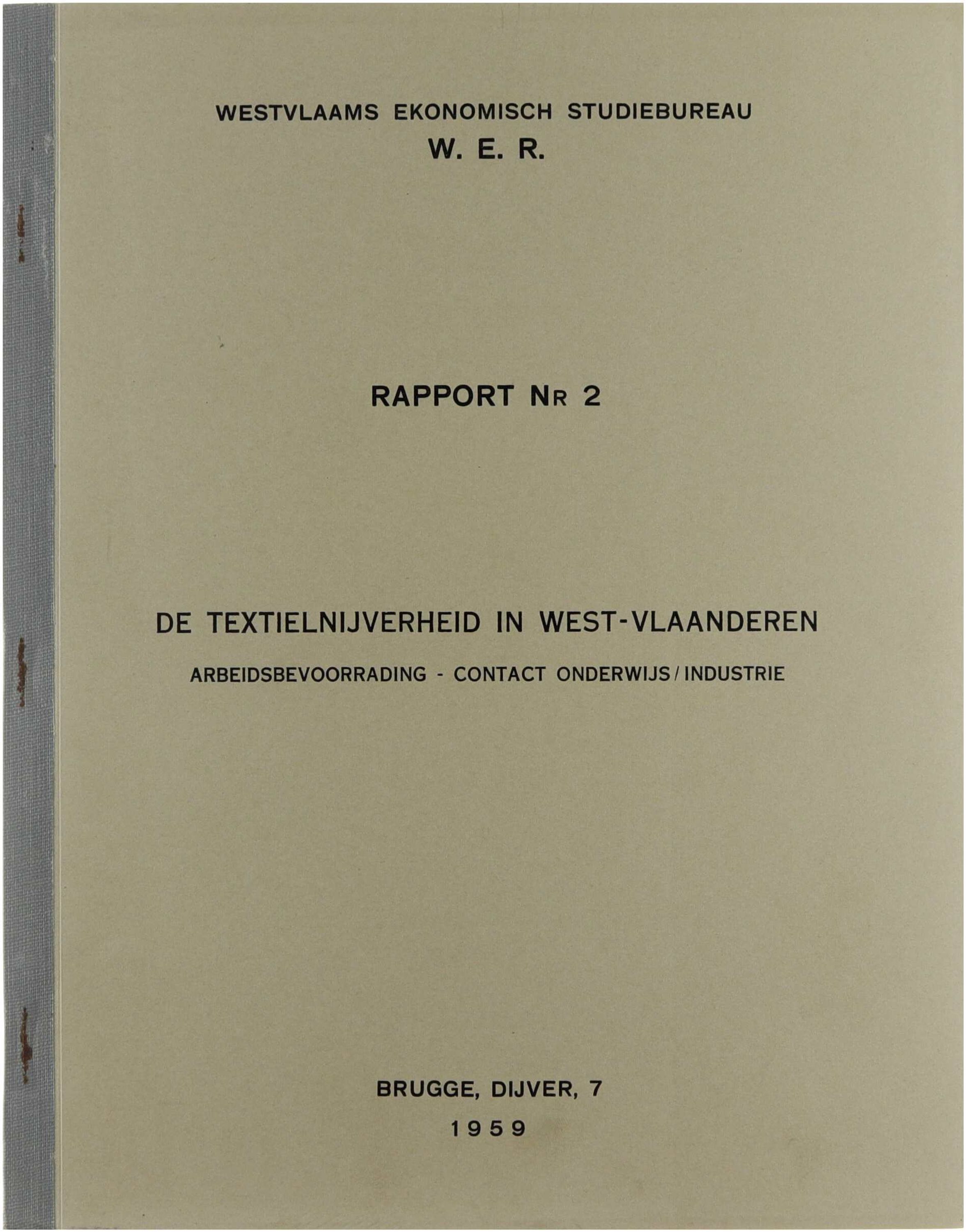 Dit rapport onderzoekt de structuur en ontwikkeling van de textielnijverheid in West-Vlaanderen in de jaren vijftig, met bijzondere aandacht voor arbeidsbevoorrading, de relatie tussen ondernemingen en arbeidsmarkt, en de wisselwerking tussen onderwijs en industrie. Aan de hand van statistisch materiaal en economische analyse bespreekt de auteur de personeelsproblematiek, opleidingsnoden en regionale economische context van de sector. Het werk kadert binnen de economische studie en beleidsvoorbereiding van het Westvlaams Ekonomisch Studiebureau.