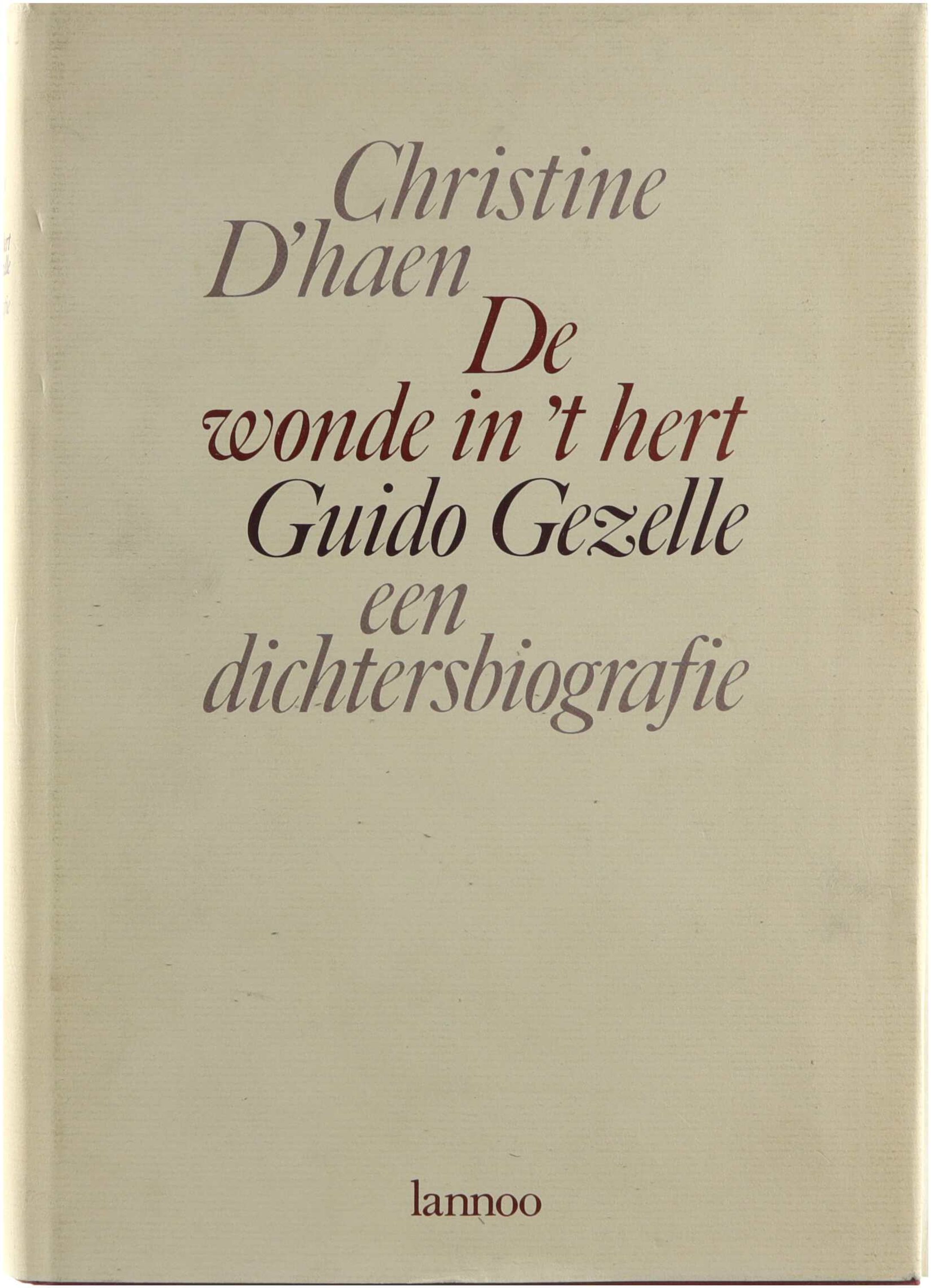 In De wonde in 't hert. Guido Gezelle, een dichtersbiografie schetst Christine D'haen een indringend portret van Guido Gezelle, waarin zij zijn leven, innerlijke conflicten, religieuze beleving en poëtische ontwikkeling onderzoekt en zijn werk plaatst binnen de context van de 19e-eeuwse Vlaamse literatuur.