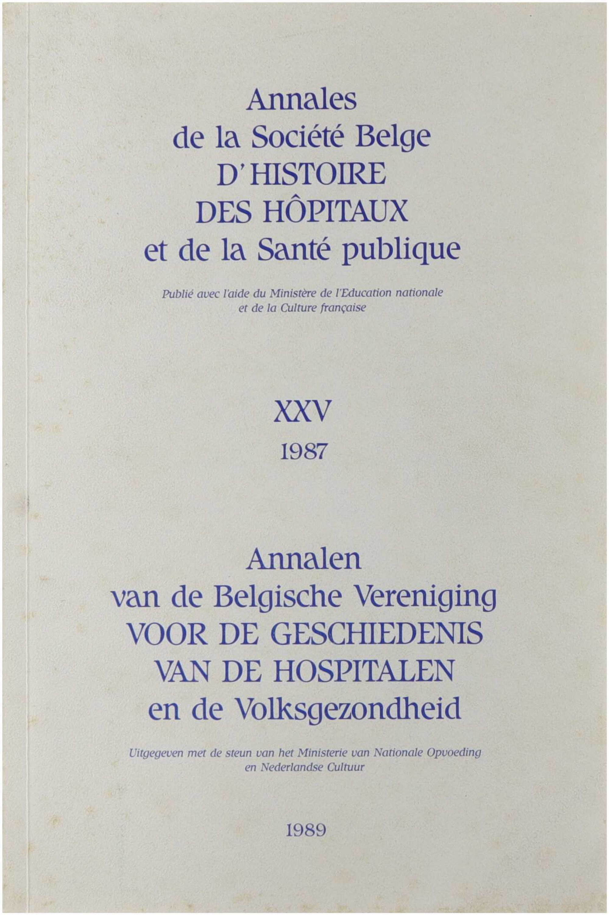Annales de la Société Belge d’Histoire des Hôpitaux et de la Santé publique/ Annalen van de Belgische Vereniging voor de geschiedenis van de Hospitalen en de Volksgezondheid (XXV)