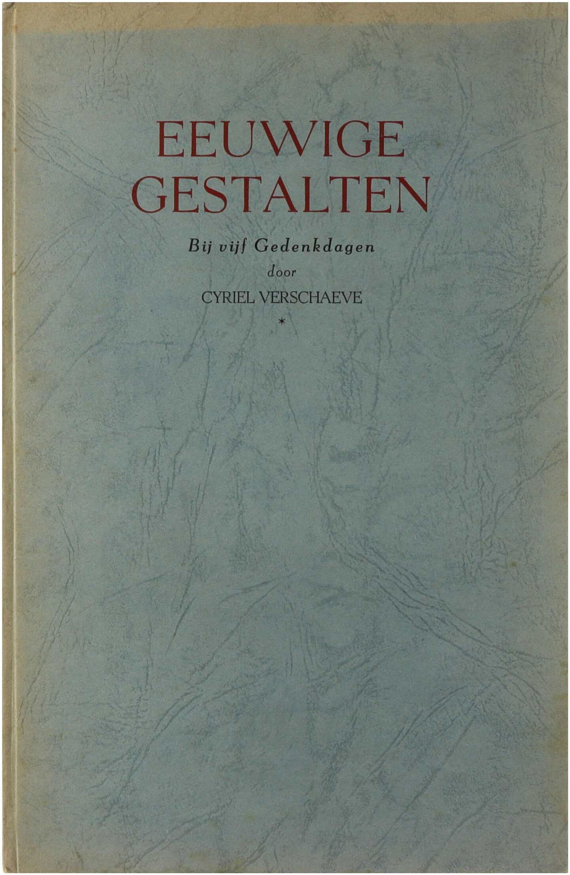 In Eeuwige gestalten herdenkt Cyriel Verschaeve vijf grote figuren uit de Europese cultuurgeschiedenis—Michelangelo, Hölderlin, Leopardi, Mozart en Dante—en reflecteert hij op hun artistieke en geestelijke betekenis, waarbij hij hun werk en persoonlijkheid plaatst binnen een bredere visie op kunst, genialiteit en de blijvende invloed van cultuur in de westerse traditie.