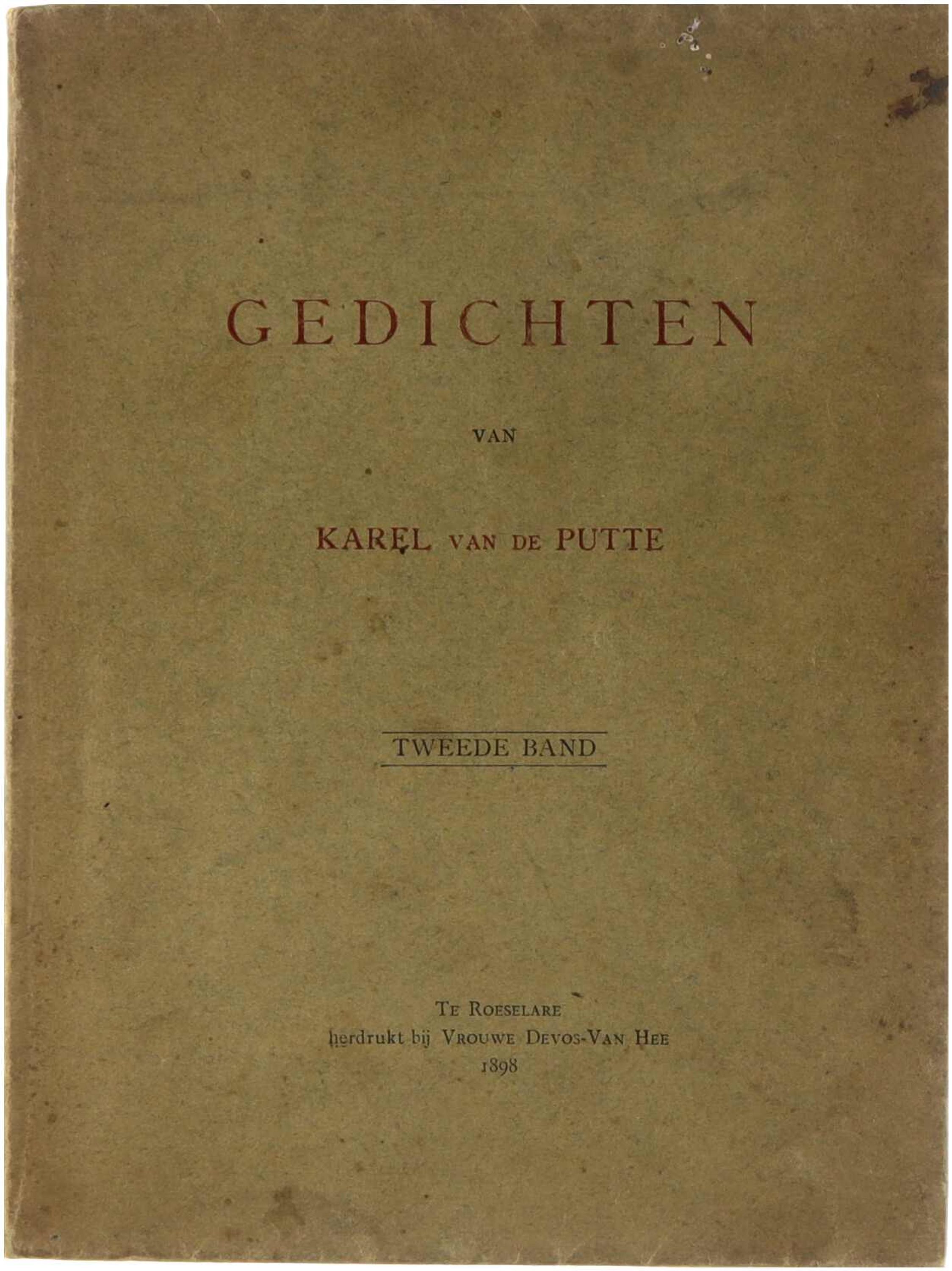 Deze tweede bundel Gedichten van Karel Van de Putte bevat lyrische poëzie uit het einde van de negentiende eeuw. De gedichten weerspiegelen religieuze en morele thema’s, evenals natuur- en gevoelslyriek, kenmerkend voor de Vlaamse katholieke dichtkunst van die periode. Het werk sluit aan bij de regionale literaire traditie van West-Vlaanderen rond de eeuwwisseling.