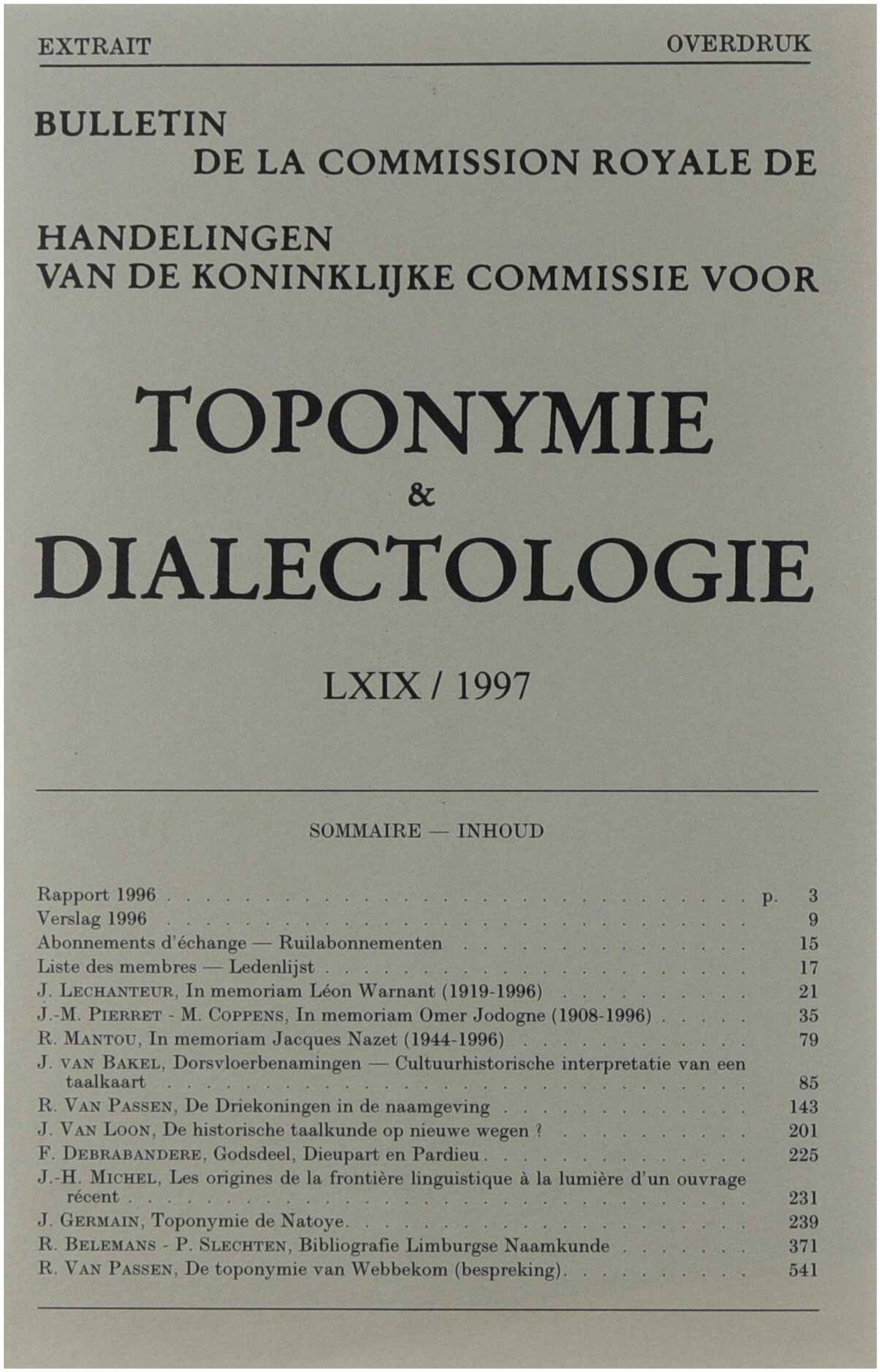 Overdruk uit Handelingen van de koninklijke commissie voor toponymie en dialectologie, LXIX