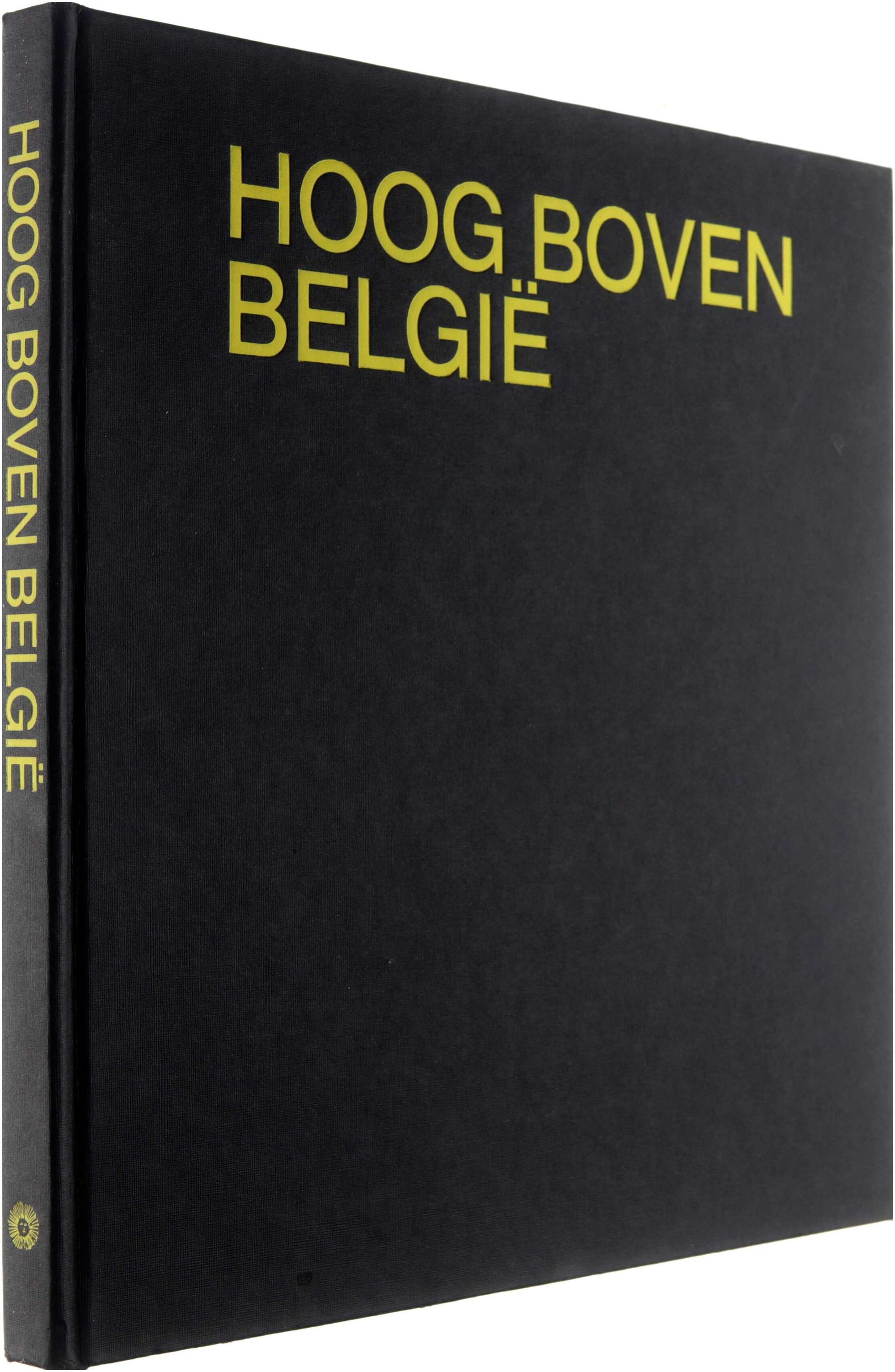 Een fotoboek met luchtfoto's van steden, dorpen en landschappen in België. Het toont indrukwekkende uitzichten "hoog boven" het land.