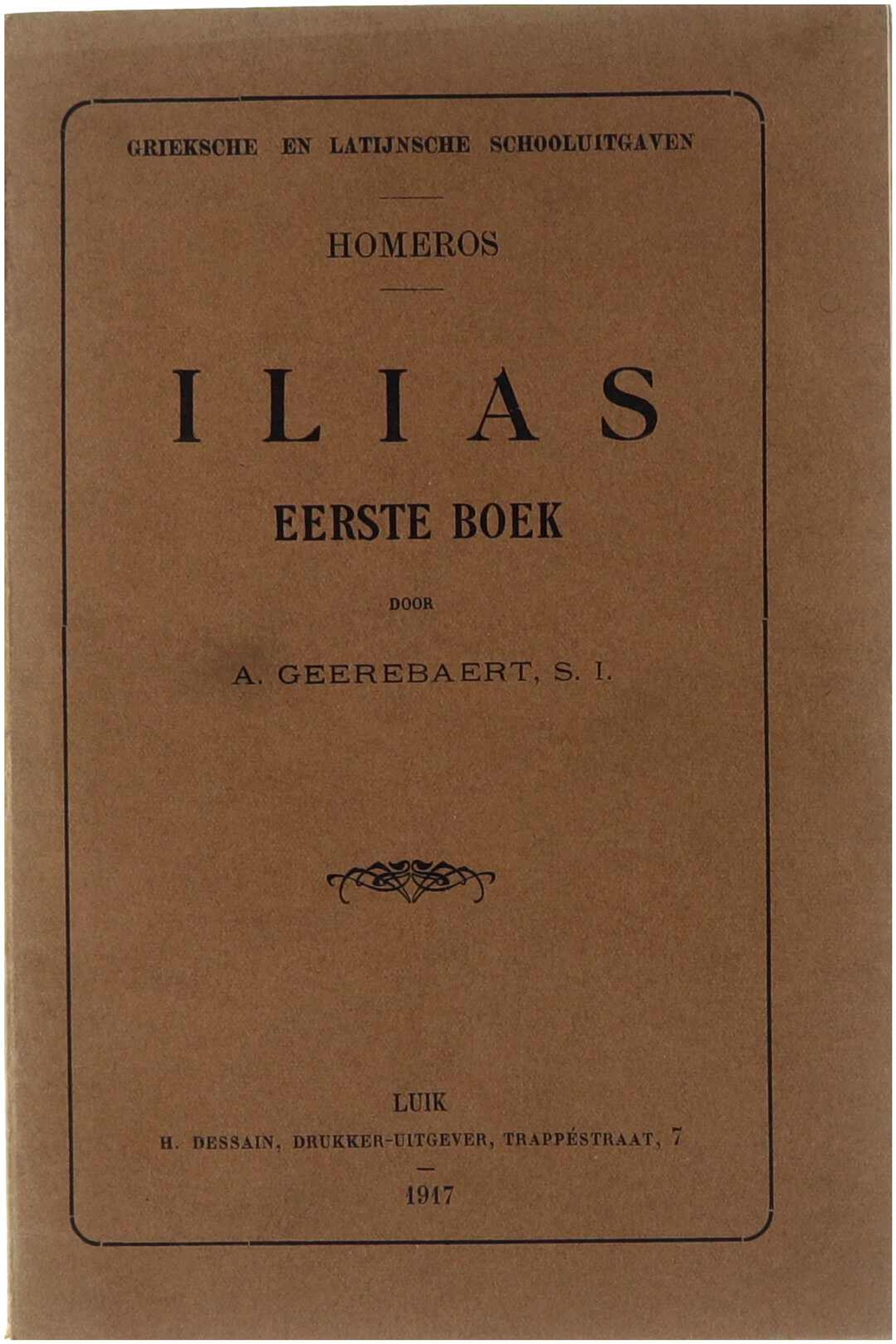 Deze schooluitgave bevat het eerste boek van de Ilias van Homeros, voorzien van inleiding en toelichtingen door A. Geerebaert. De editie is bedoeld voor het klassieke onderwijs. Griekse tekst.