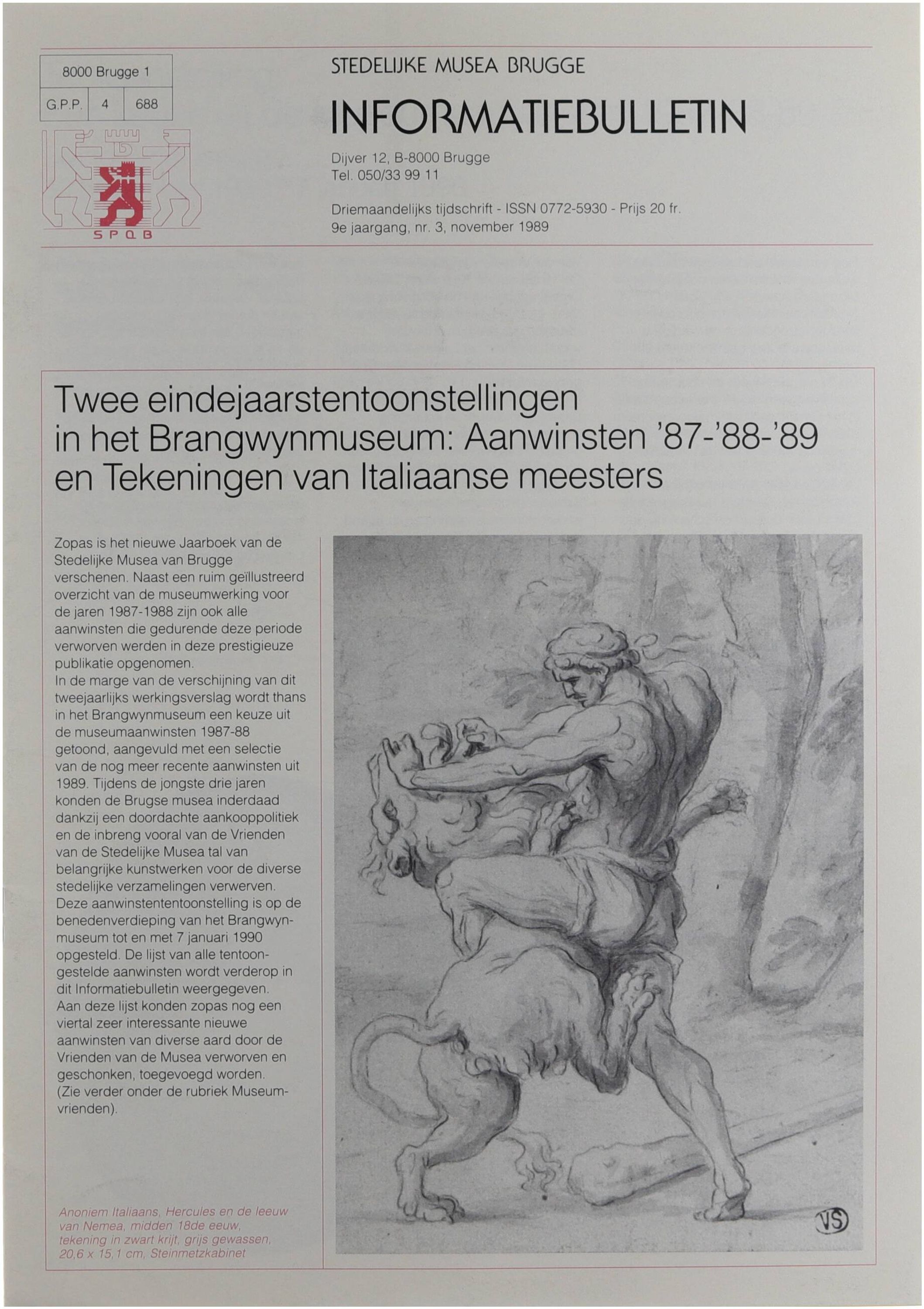 Informatiebulletin. Stedelijke musea Brugge (9de jaargang nr .3)