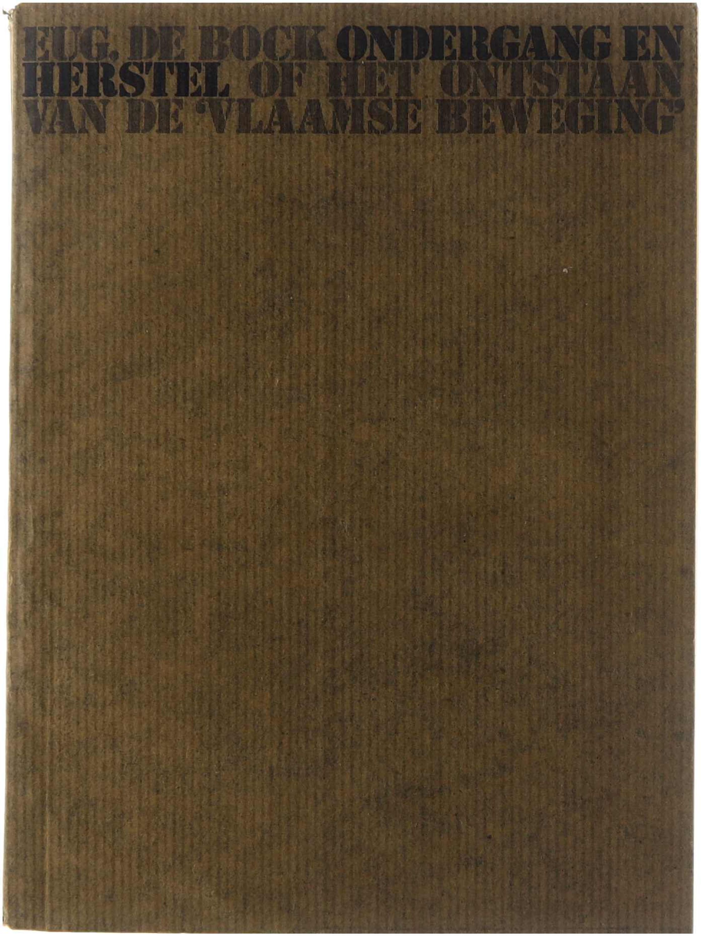 In 'Ondergang en herstel of het begin van de “Vlaamse Beweging” ' geeft Eugeen De Bock een diepgaande studie van de culturele, literaire en politieke ontwikkelingen in de eerste helft van de 19e eeuw die de aanzet vormden tot de Vlaamse beweging. Hij verzamelt essays en studies over de taalstrijd, de rol van tijdschriften, correspondentie van schrijvers en de positie van intellectuelen, en toont aldus de overgang van een Vlaamse elitetaal- en cultuurbelang naar een bewuste beweging.