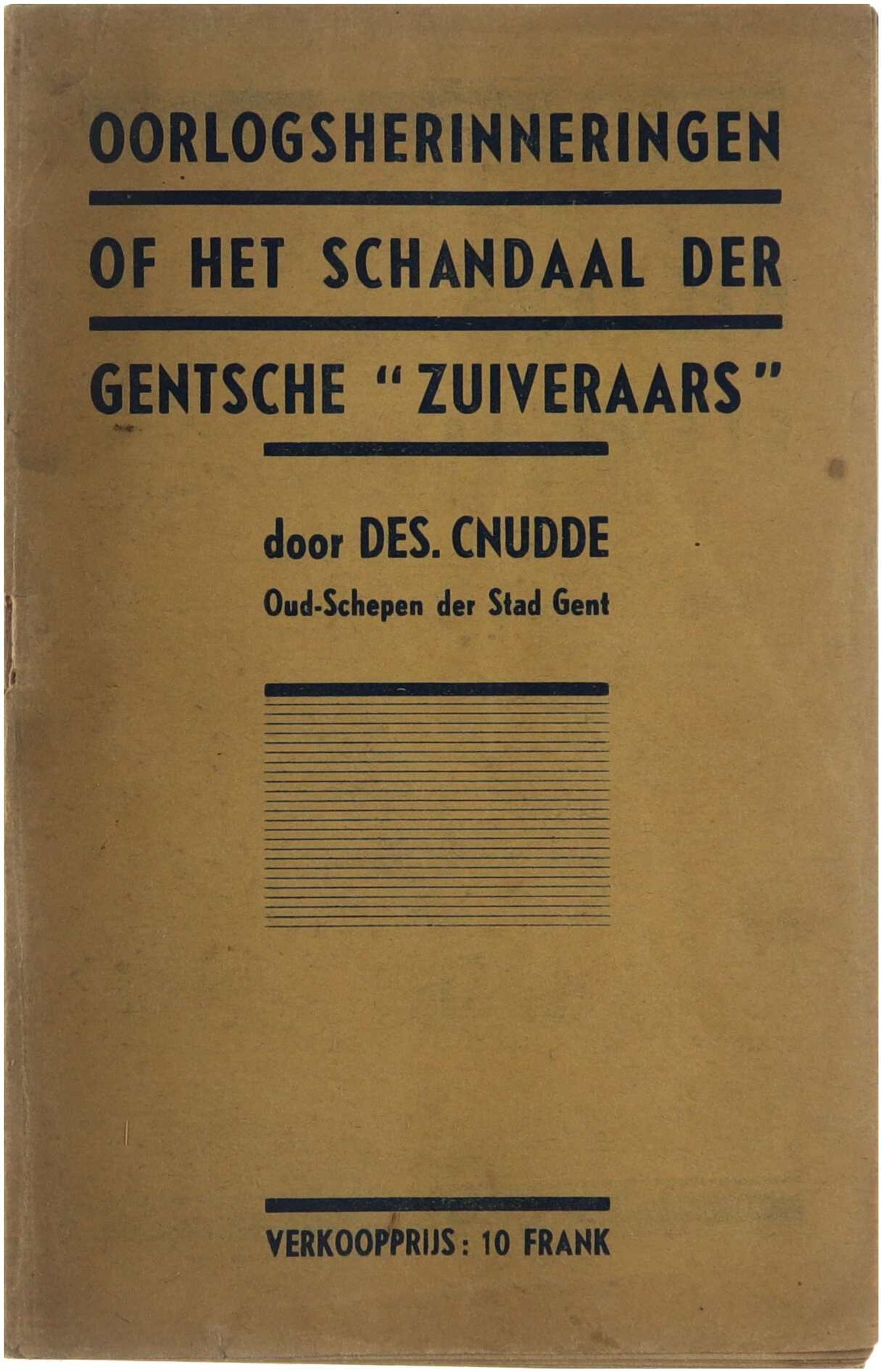 Oorlogsherinneringen of het schandaal der Gentsche ‘zuiveraars’ is een polemisch en autobiografisch getint geschrift waarin Desiré Cnudde zijn ervaringen tijdens en vooral na de Tweede Wereldoorlog uiteenzet. Het werk richt zich in het bijzonder op de naoorlogse zuiveringen in Gent en levert scherpe kritiek op de personen en instanties die bij deze repressie betrokken waren. Vanuit persoonlijk perspectief kaart de auteur vermeende misbruiken, willekeur en onrechtvaardigheden aan, wat het boek situeert binnen de bredere naoorlogse literatuur rond collaboratie, repressie en morele verantwoording in België.