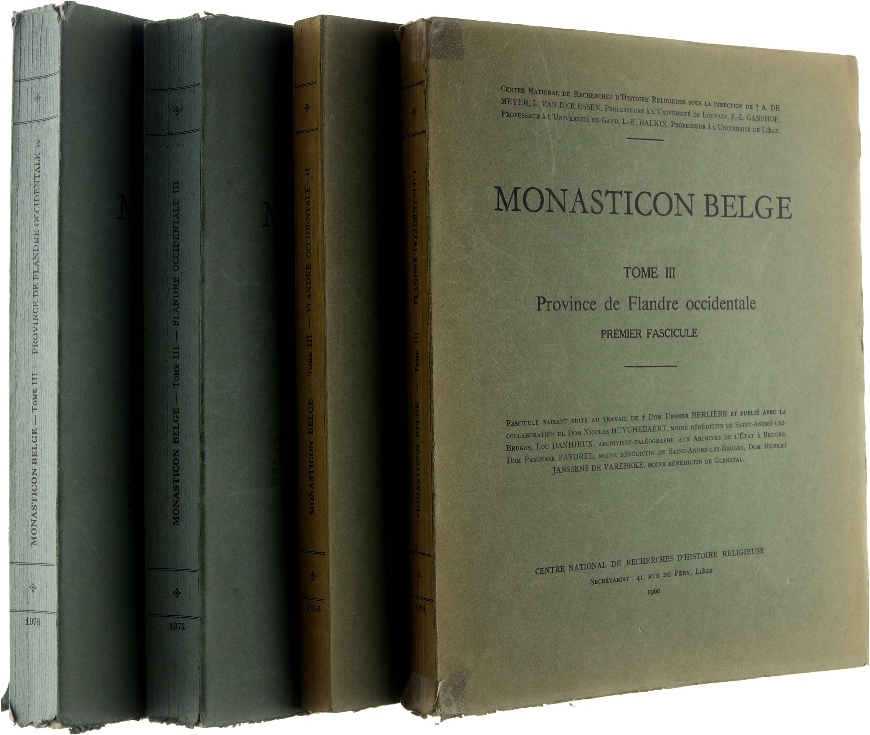 Ce troisième ensemble du Monasticon belge est consacré à la province de Flandre occidentale et se compose de quatre volumes publiés entre 1960 et 1978. L’ouvrage offre un inventaire systématique et critique des institutions religieuses régulières et séculières établies dans la province, depuis le Moyen Âge jusqu’à l’époque contemporaine. Chaque notice comprend des données historiques, topographiques et institutionnelles, appuyées sur une documentation archivistique approfondie. L’ensemble constitue une référence fondamentale pour l’histoire religieuse, monastique et régionale de la Belgique.