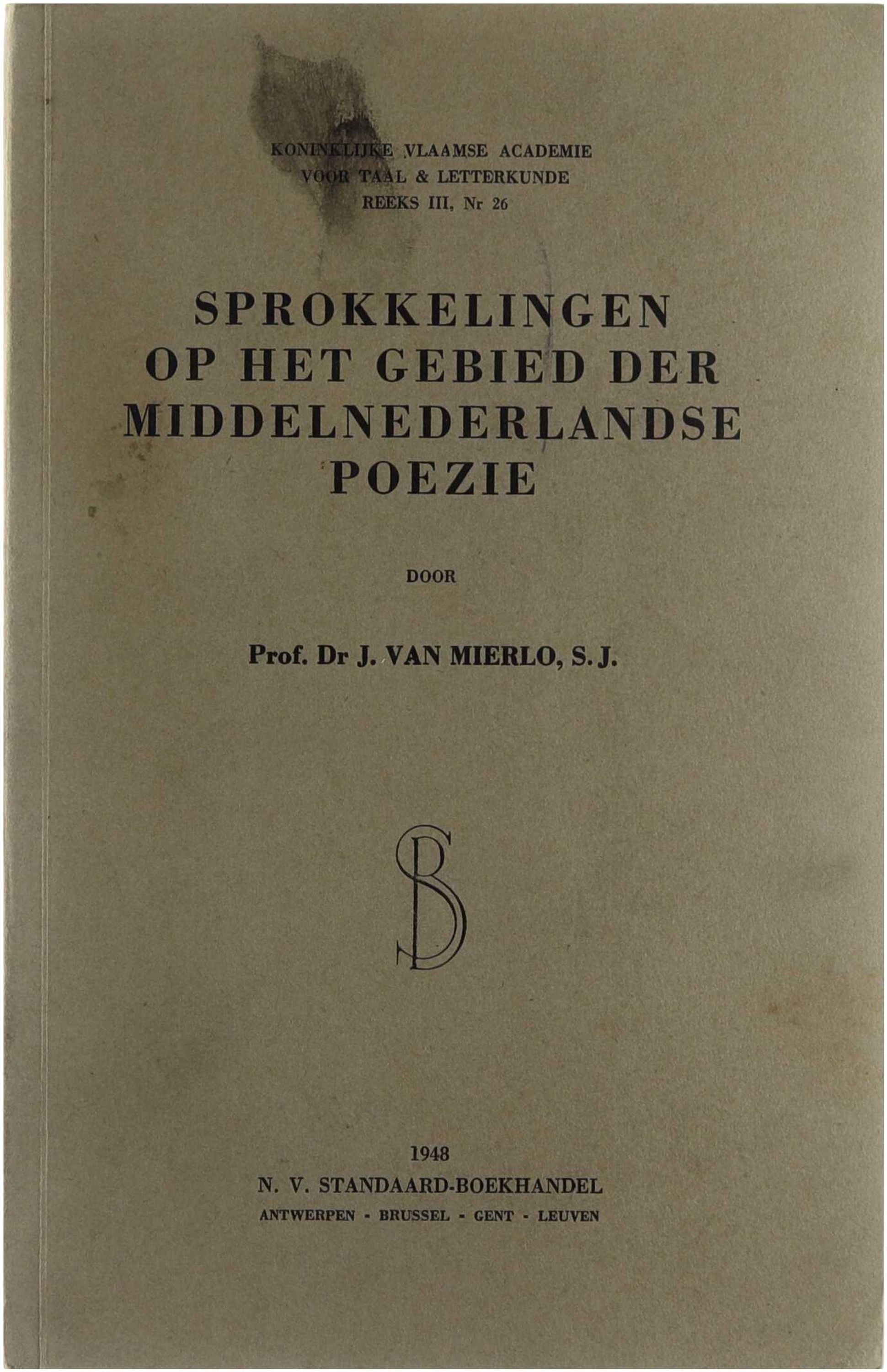 “Sprokkelingen op het gebied der Middelnederlandse poëzie” is een filologische en literair-historische studie waarin J. Van Mierlo een reeks afzonderlijke bijdragen samenbrengt over Middelnederlandse dichtkunst. De auteur behandelt uiteenlopende teksten, motieven en auteurs uit de middeleeuwse Nederlandstalige literatuur, met bijzondere aandacht voor tekstkritiek, overlevering, interpretatie en taalgebruik. Het werk weerspiegelt Van Mierlo’s diepgaande kennis van de Middelnederlandse literatuur en vormt een waardevolle bijdrage tot het academisch onderzoek naar de poëzie van de middeleeuwen.
