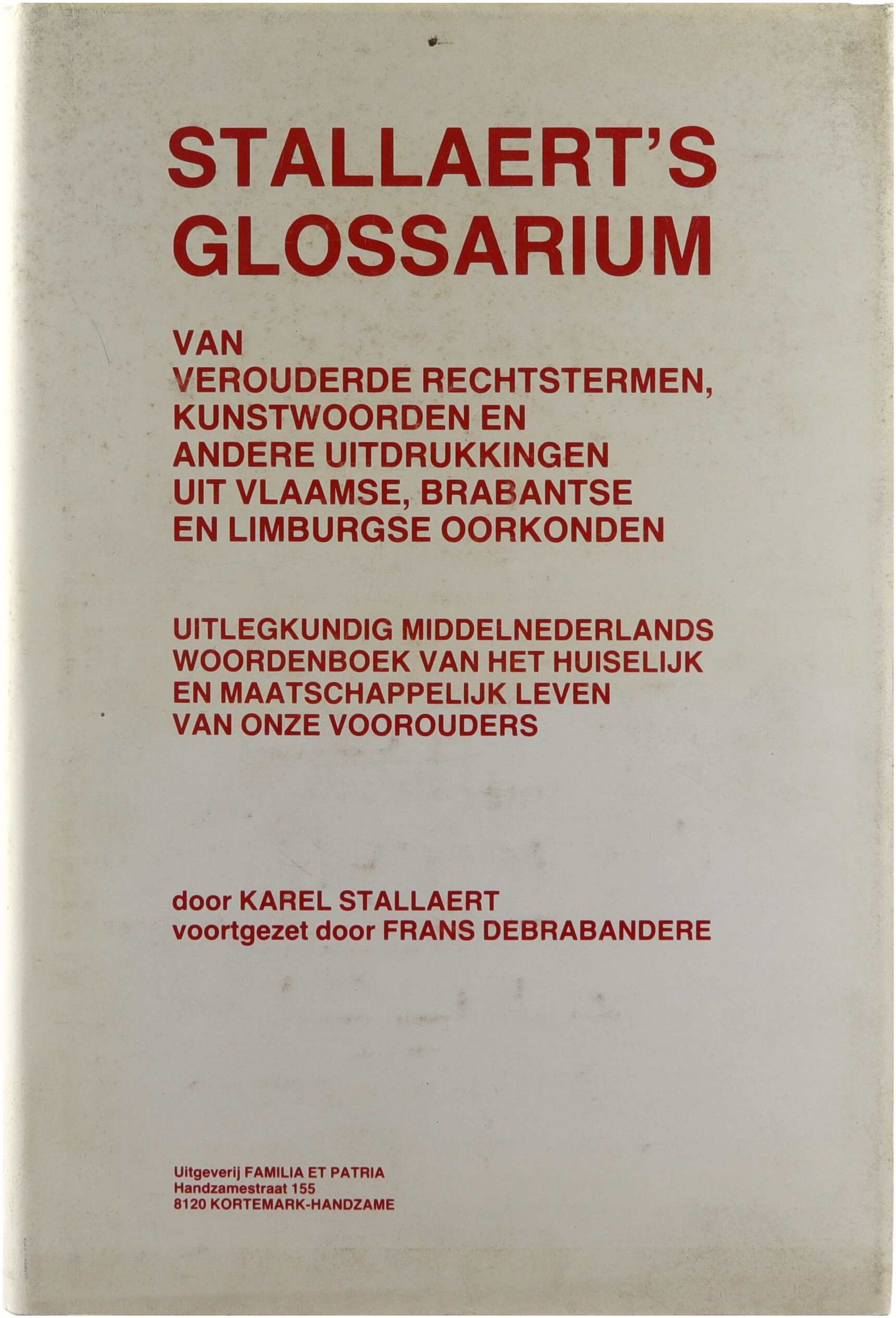 Stallaert's glossarium van verouderde rechtstermen, kunstwoorden en andere uitdrukkingen uit Vlaamse, Brabantse en Limburgse oorkonden. Uitlegkundig Middelnederlands woordenboek van het huiselijk en maatschappelijk leven van onze voorouders