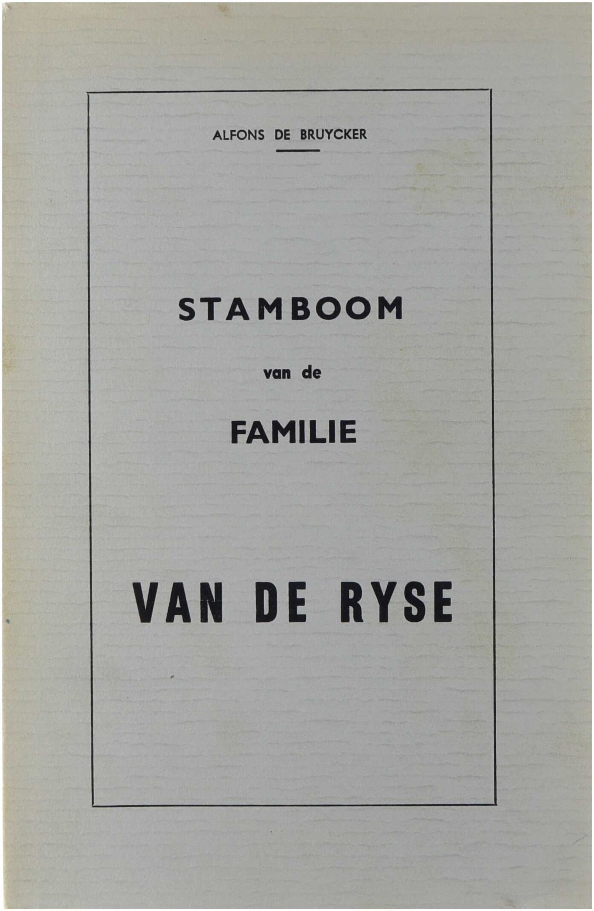 Deze genealogische studie brengt de afstamming en verwantschappen van de familie Van de Ryse in kaart. Op basis van parochieregisters, burgerlijke stand en andere archivalische bronnen reconstrueert Alfons De Bruycker meerdere generaties, met aandacht voor familiale vertakkingen, huwelijken en lokale verankering, en levert zo een documentair naslagwerk voor familie- en lokale geschiedenis.