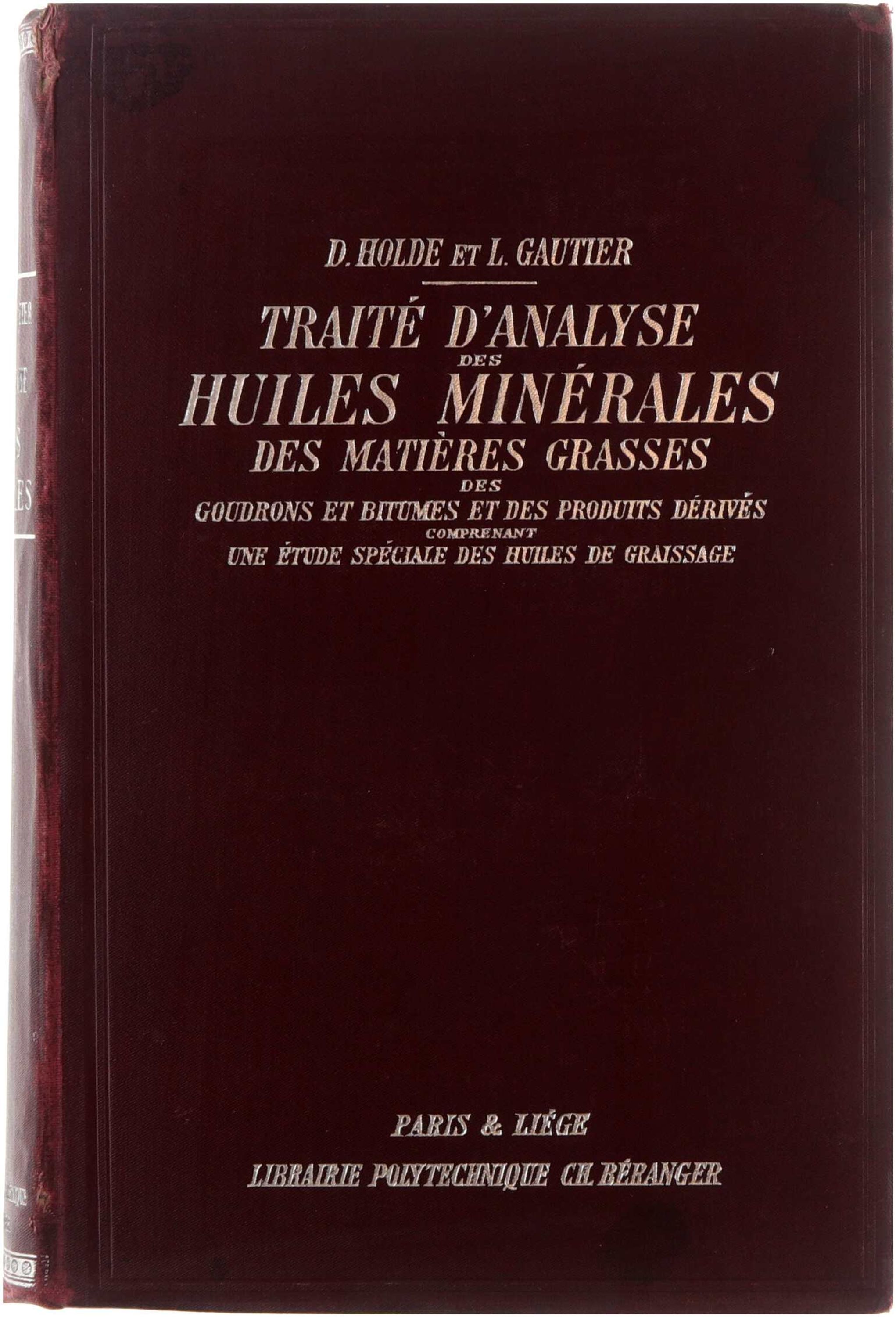 Traité d'analyse des huiles minérales des matières grasses des goudrons et bitumes et des produits dérivés comprenant une etude spéciale des huiles de graissage