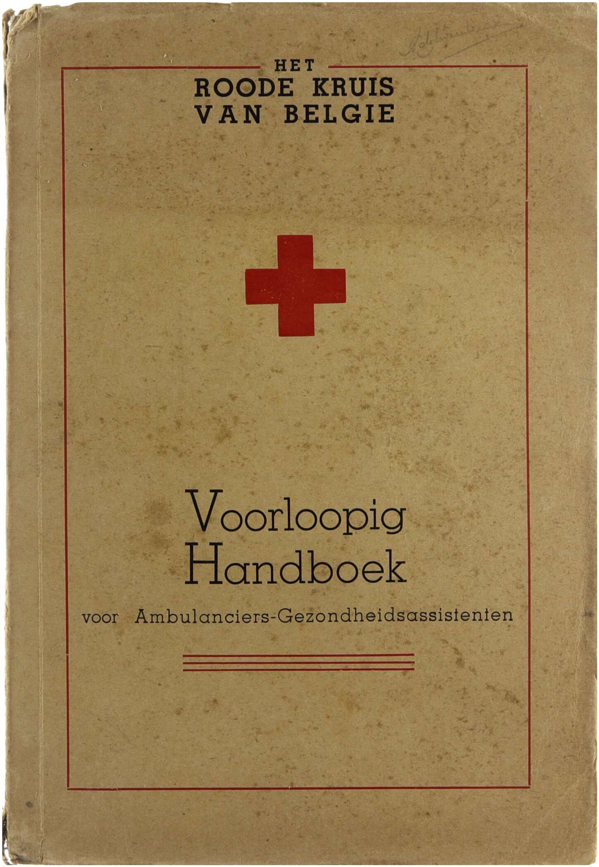 Het Voorloopig Handboek voor Ambulanciers-Gezondheidsassistenten is een opleidings- en instructiehandleiding uitgegeven door het Roode Kruis van België tijdens de Tweede Wereldoorlog. Het handboek biedt basiskennis en richtlijnen voor ambulanciers en gezondheidsassistenten, met aandacht voor eerste hulp, verzorging van gewonden, hygiënische maatregelen en organisatie van medische hulpverlening in nood- en crisissituaties. De voorlopige aard van de uitgave weerspiegelt de uitzonderlijke omstandigheden van de oorlogsjaren en de dringende nood aan praktische medische opleiding