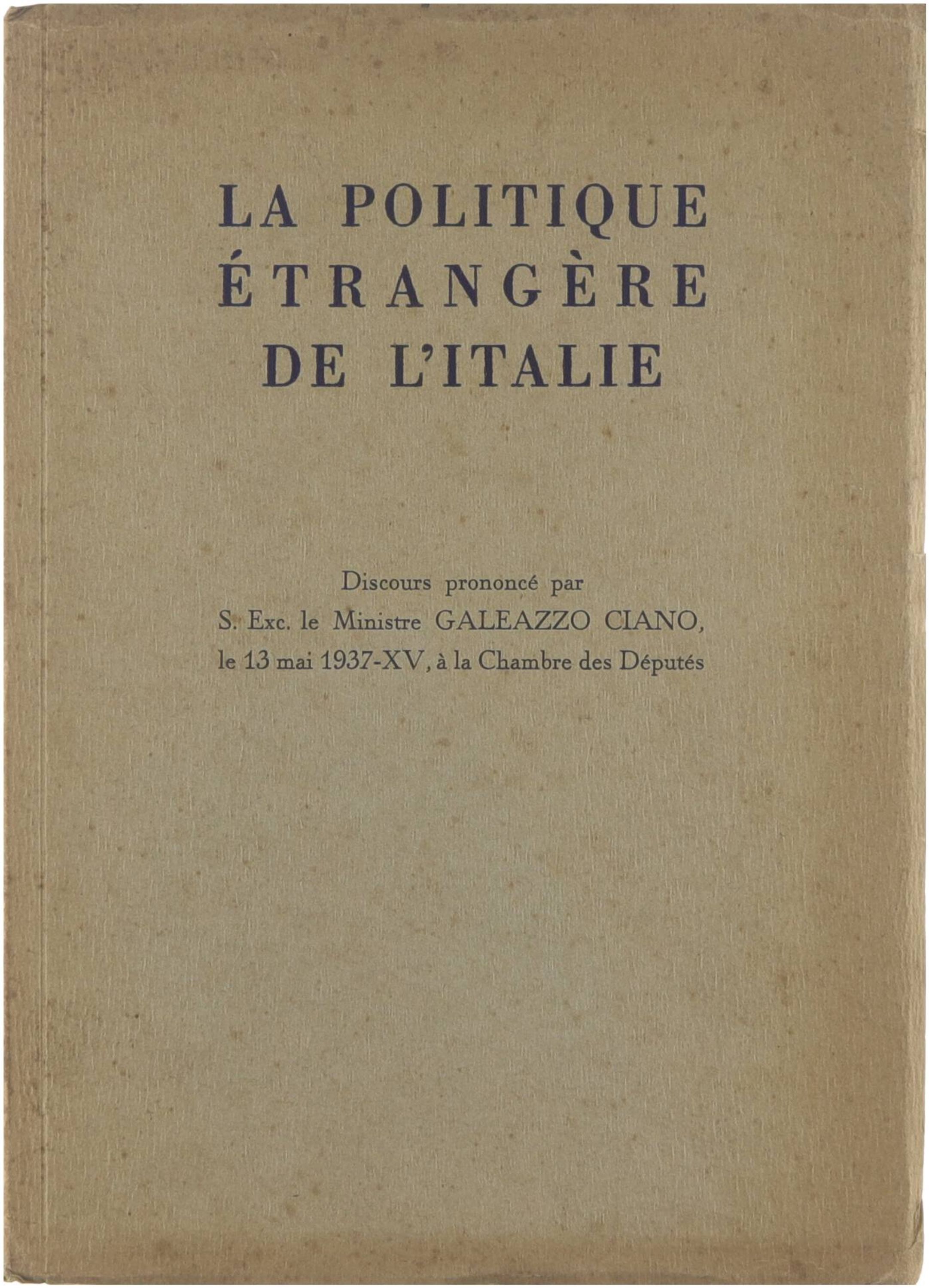 La politique étrangère de l'Italie. (Traduit par Ch. Belin). Discours prononcé... le 13 mai 1937-XV, à la Chambre des députés.