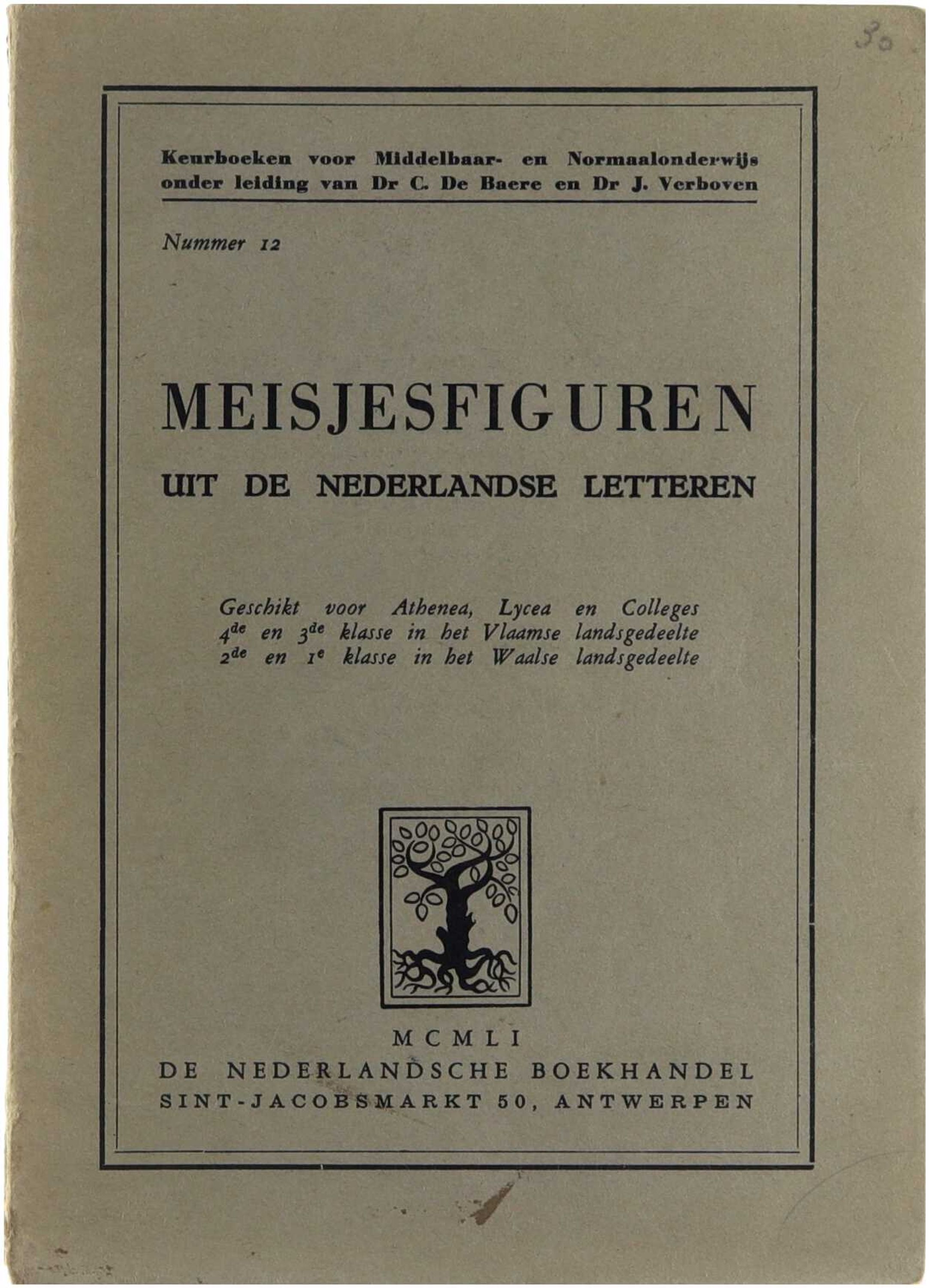 pp. 140 / Geschikt voor Athenea, Lycea en Colleges 4e en 3e klasse in het Vlaamse landsgedeelte; 2e en 1e klasse in het Waalse landsgedeelte, name on title page / naam op titel pagina, 3e druk, Spine damaged/rug beschadigd, Nederlandse literatuur, meisjes, personages, fictie, 20e eeuw