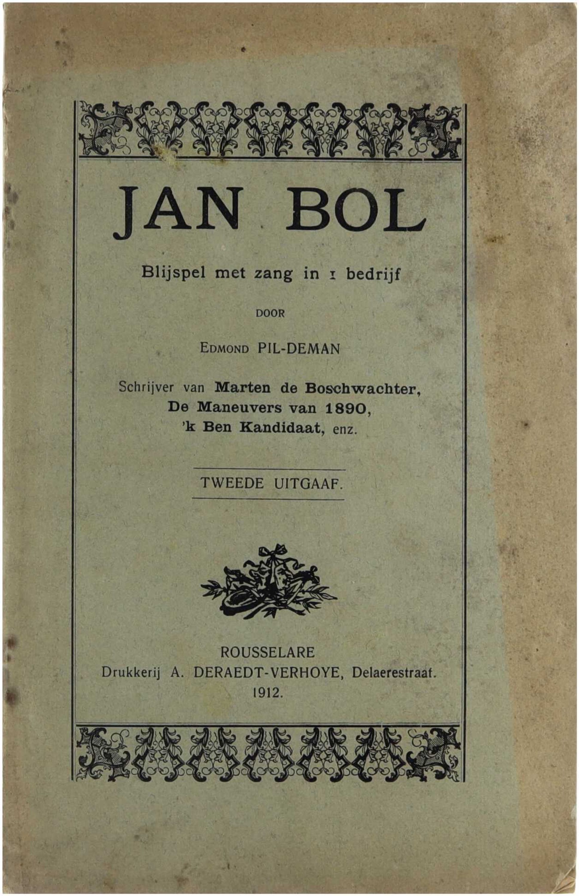 “Jan Bol” is een blijspel in één bedrijf met zang — een lichte komedie waarin het personage Jan Bol centraal staat. Roeselare