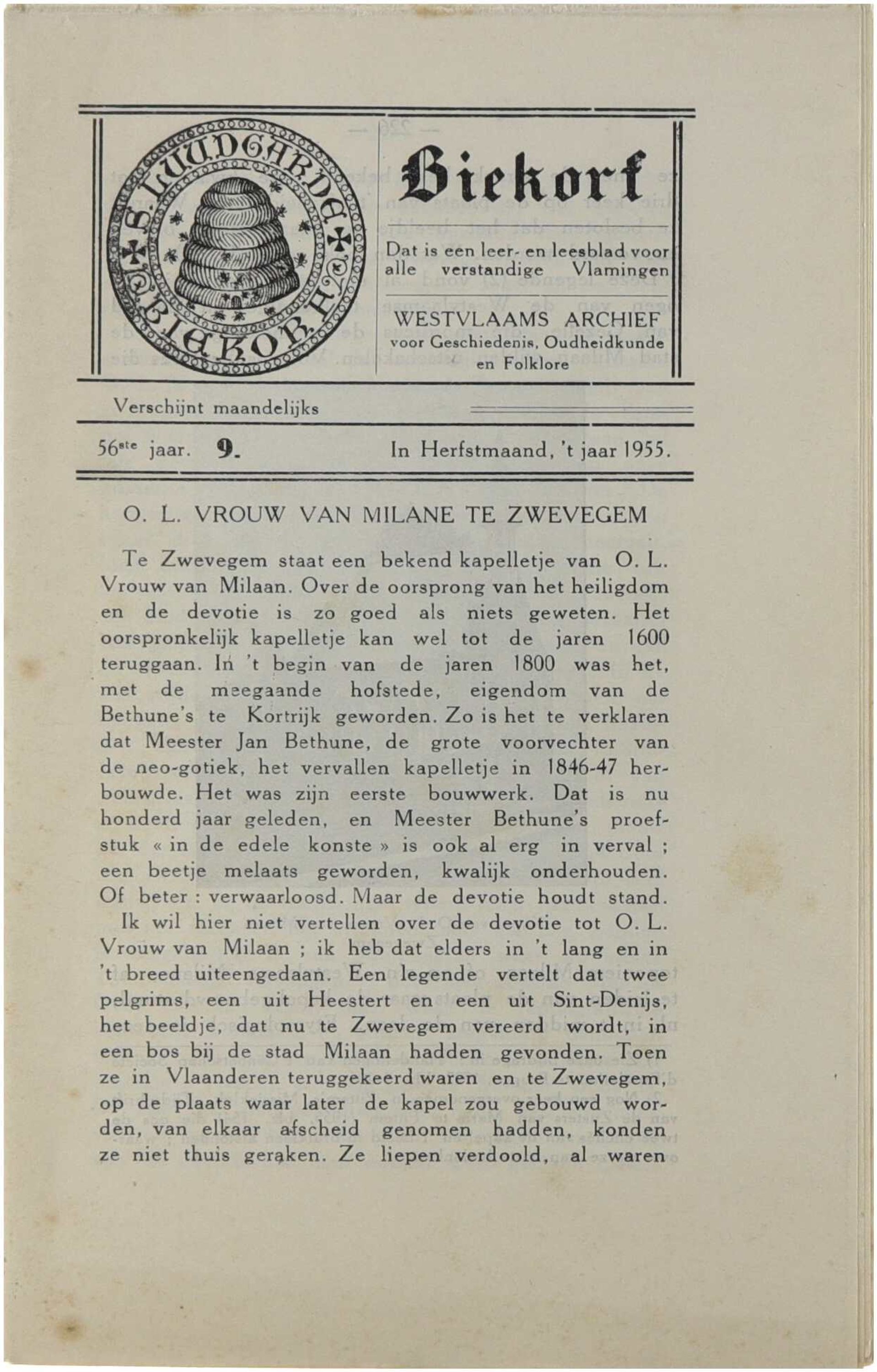 Biekorf. Westvlaams archief voor geschiedenis, oudheidkunde en folklore. 56ste jaar nummer 9