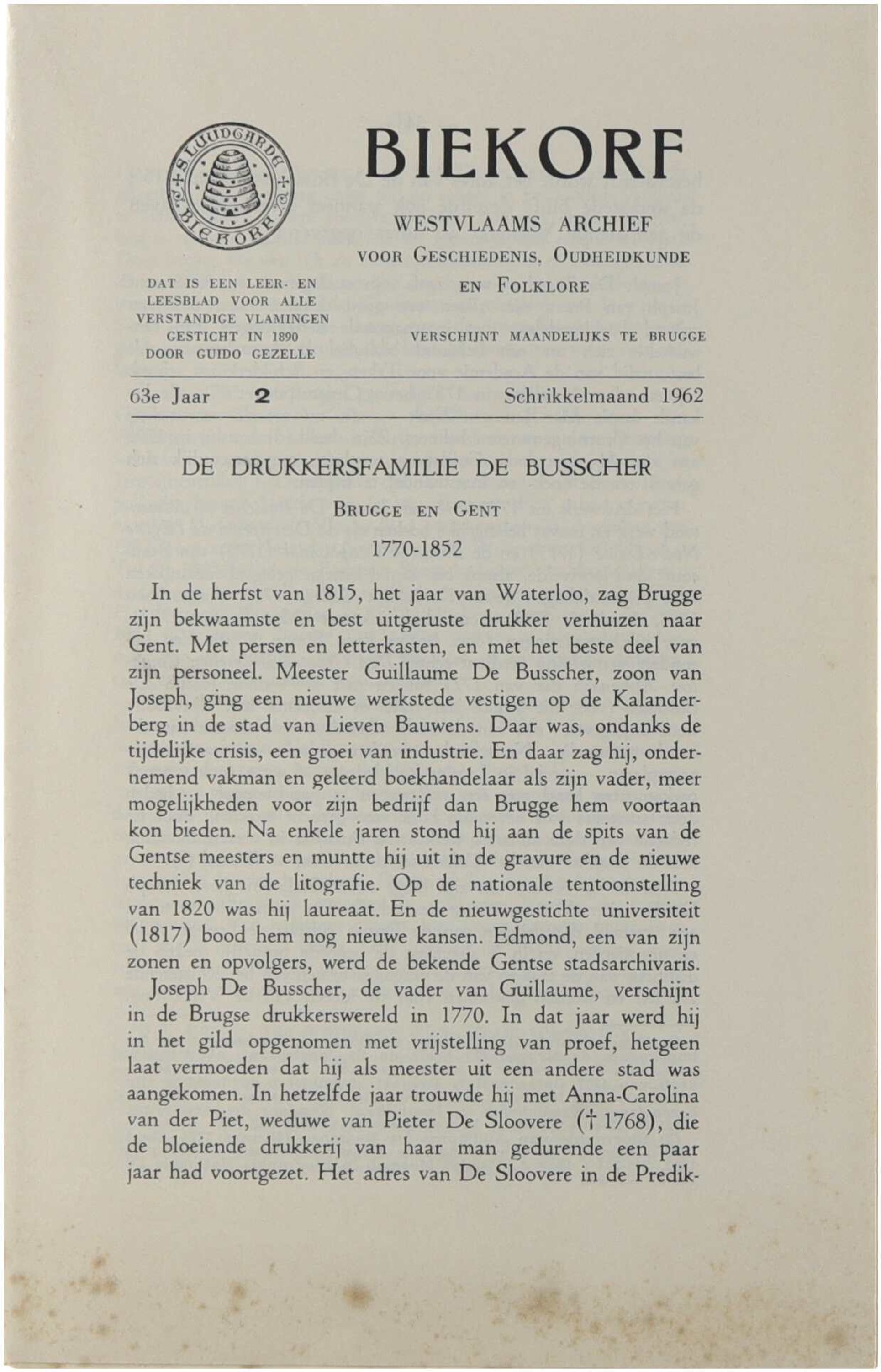 Inhoud; De drukkersfamilie De Busscher, Brugge en Gent 1770-1852 (A. Viaene); op de meulen te Dee; Baljuw jacob Wybo uit Pittem. Prins van de rederijkerskamer van Tielt in 1539 (V. Arickx); Eigenaardige beroepen uit de oude tijd 1796-1797 (L. Van Acker); Wieltiende te Maldegem (D. Verstraete)