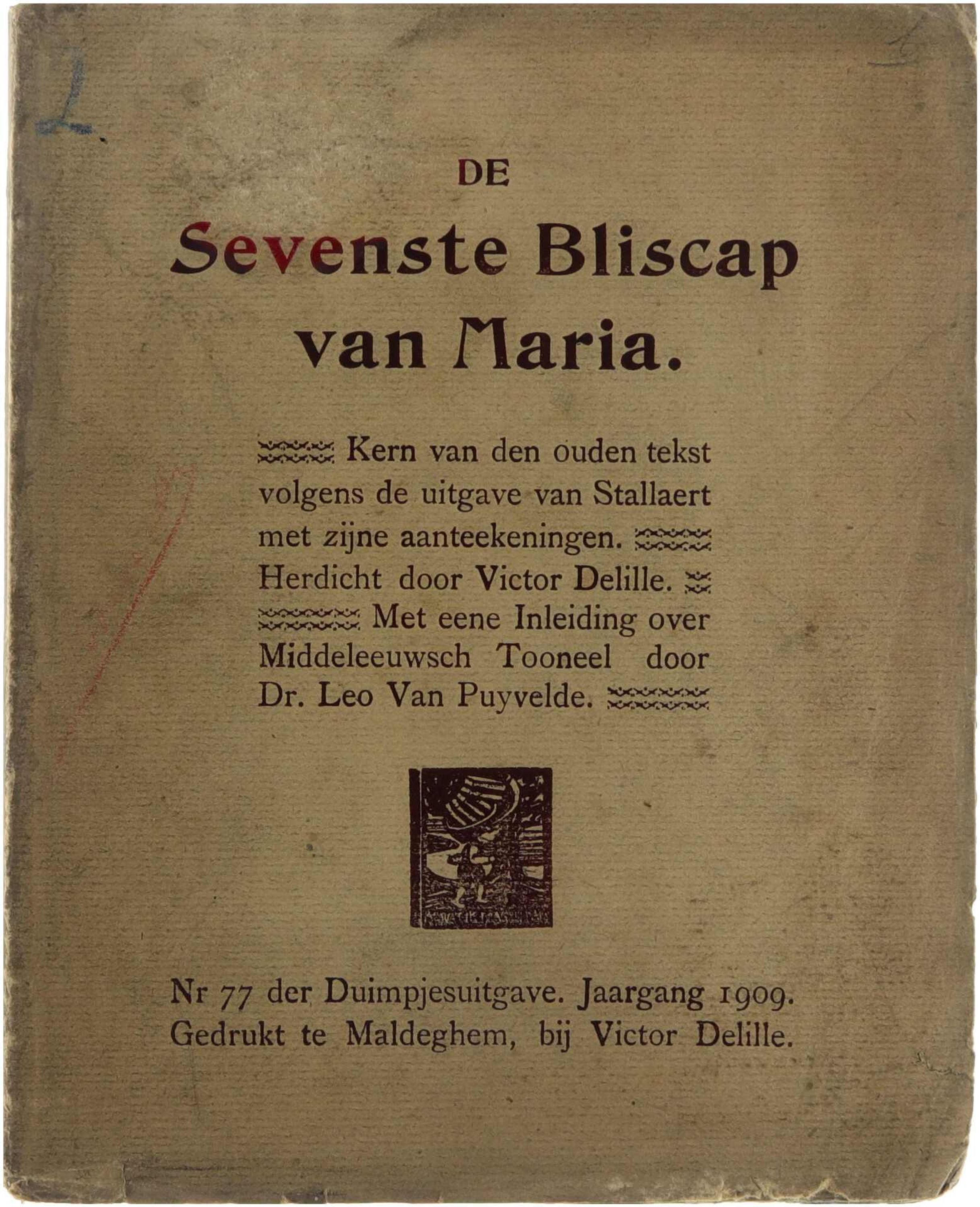 De Sevenste Bliscap van Maria. Kern van den ouden tekst volgens de uitgave van Stallaert met zijne aanteekeningen. Herdicht door Victor Delille. Met eene inleiding over Middeleeuwsch tooneel door Dr. Leo Van Puyvelde