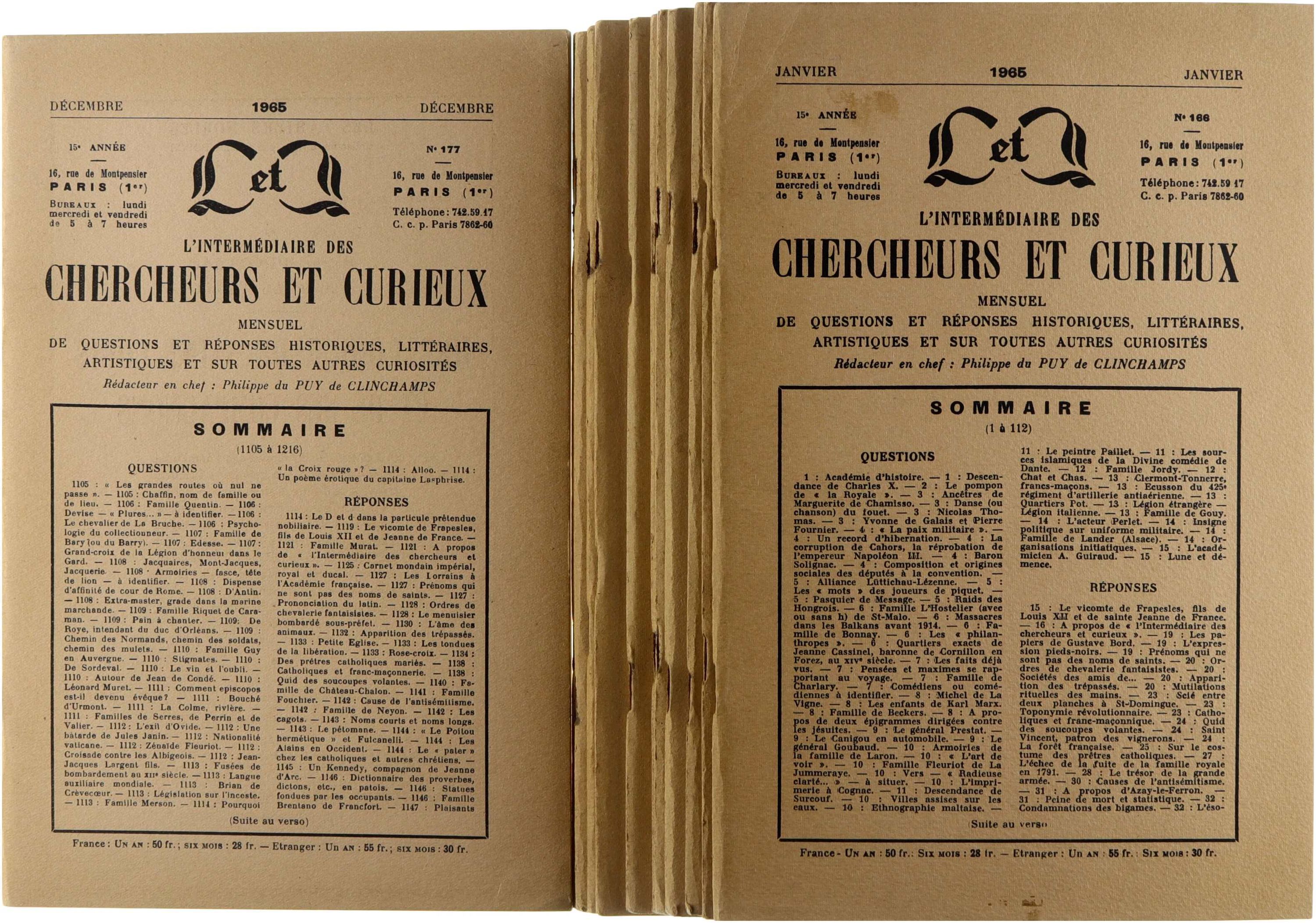 L'intermédiaire des chercheurs et curieux. Mensuel de questions et réponses historiques, littéraires, artistiques et sur toutes autres curiosités. 15° année numéros 166-177