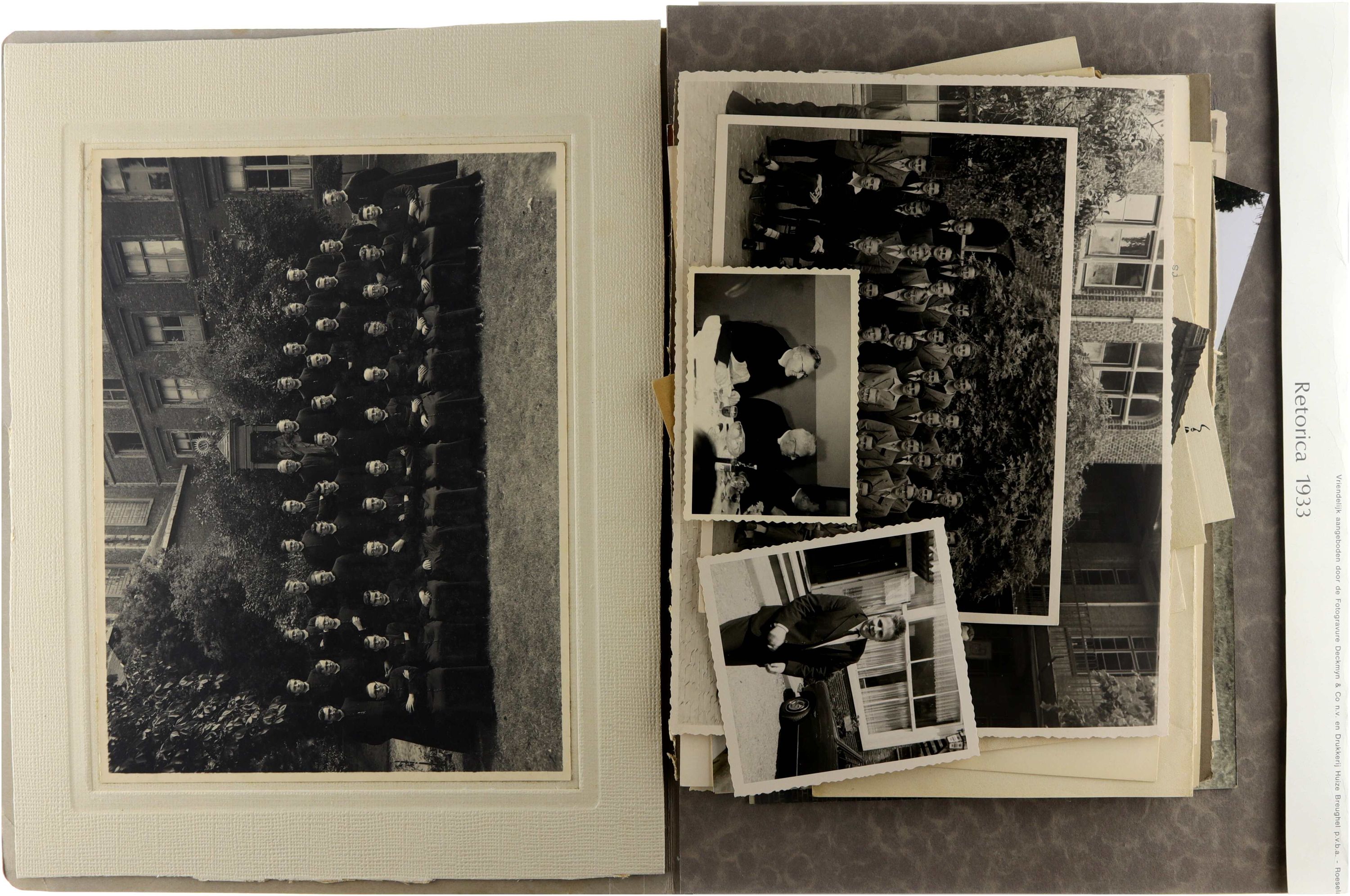 Map met historische foto’s en drukwerk betreffende het Sint-Lodewijkscollege te Brugge uit de periode 1933–1961. Het geheel bevat voornamelijk portretfoto’s van leden van het lerarencorps en daarnaast enkele leerlingen, evenals groepsfoto’s en documentatie rond schoolactiviteiten. Verder omvat de map verschillende uitnodigingen en drukwerken, onder meer voor prijsuitdelingen en activiteiten van de oud-leerlingenbond. Een afzonderlijke reeks foto’s documenteert bijeenkomsten van de retorica-afdeling van studenten die in 1944 afstudeerden. Het geheel vormt een visueel en documentair getuigenis van het schoolleven en de priesteropleiding verbonden met het college in het midden van de 20e eeuw.
