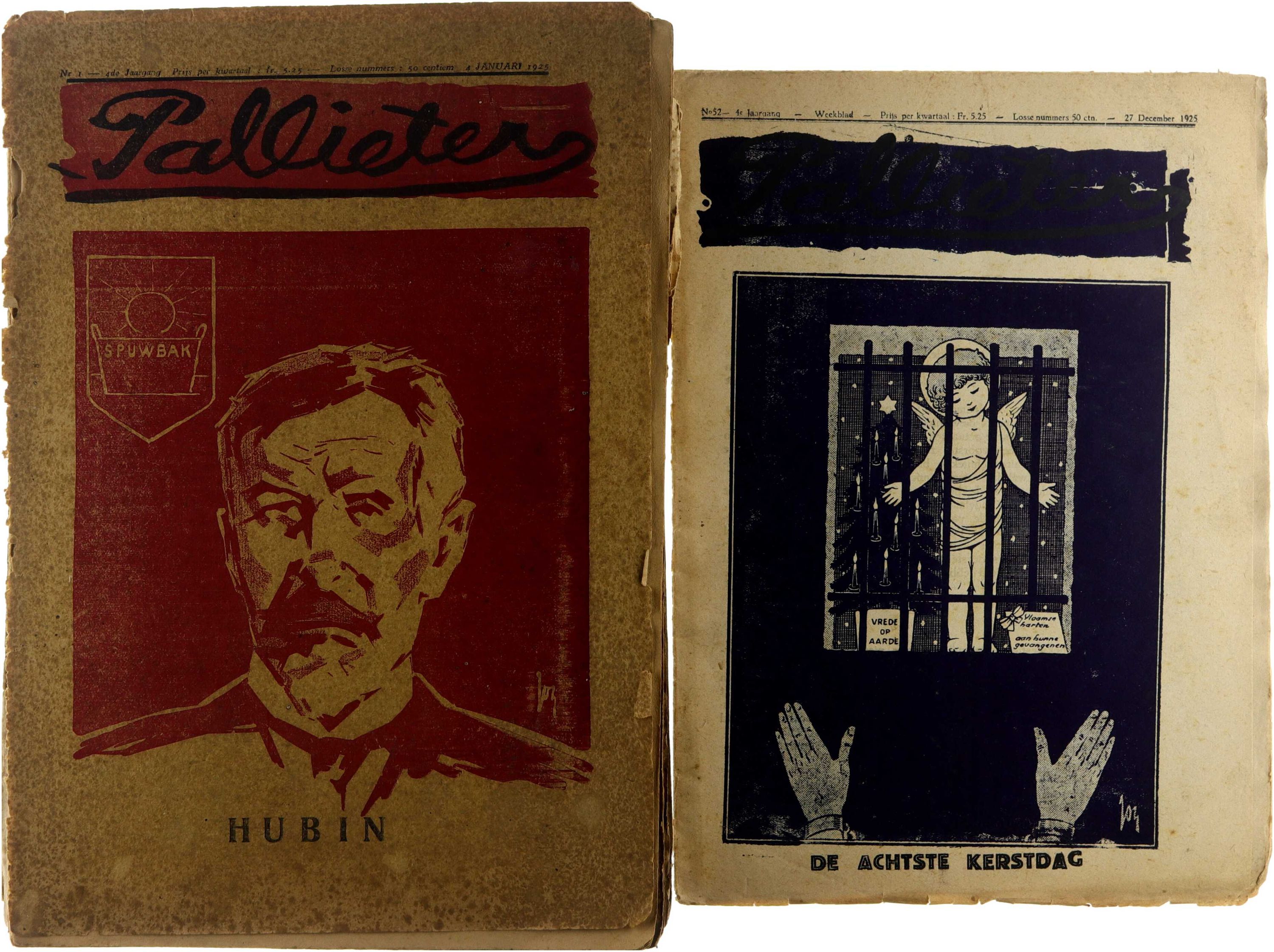Pallieter was een satirisch en polemisch Vlaams-nationalistisch weekblad dat verscheen van 2 april 1922 tot 17 juni 1928 in Brussel. Het blad stond bekend om zijn scherpe politieke kritiek, radicaal-flamingantische koers en uitgesproken polemische toon. Elk nummer telde zestien pagina’s en droeg op de voorpagina een illustratie, meestal een karikaturaal portret van een politicus of bekende figuur, getekend door Joz de Swerts. Vanaf juli 1923 stond Alfons Martens aan het hoofd van het blad, met Filip de Pillecyn als belangrijkste redacteur, wiens editoriale bijdragen vaak inhoudelijk aansloten bij de coverillustraties. Ondanks felle aanvallen op politieke tegenstanders leidde dit slechts tot één gerechtelijke veroordeling. Financiële moeilijkheden, mede veroorzaakt door muntdevaluatie en dalende verkoop, brachten uiteindelijk de stopzetting van het blad.