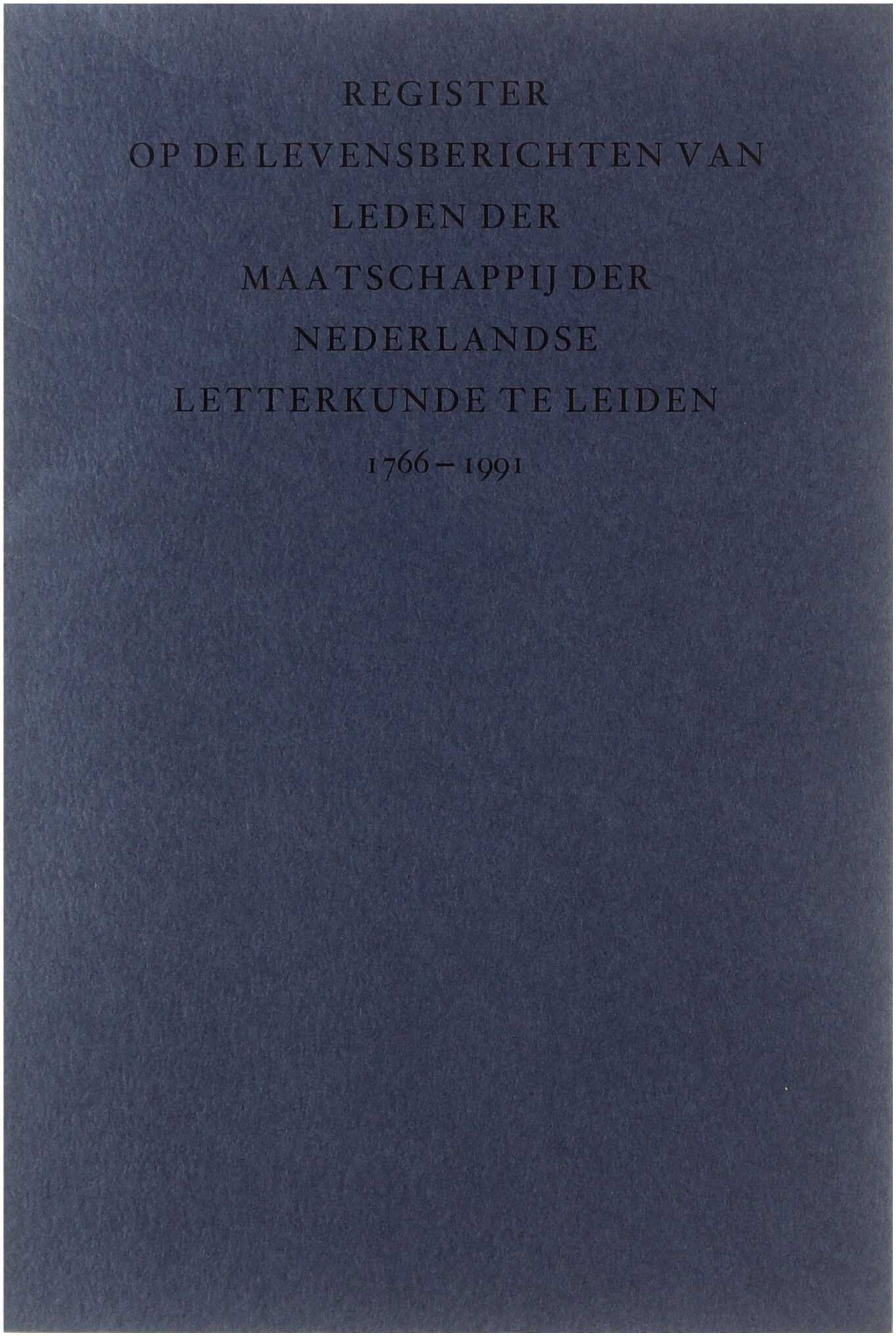 Register op de levensberichten van leden der maatschappij der Nederlandse letterkunde te Leiden (1766-1991)