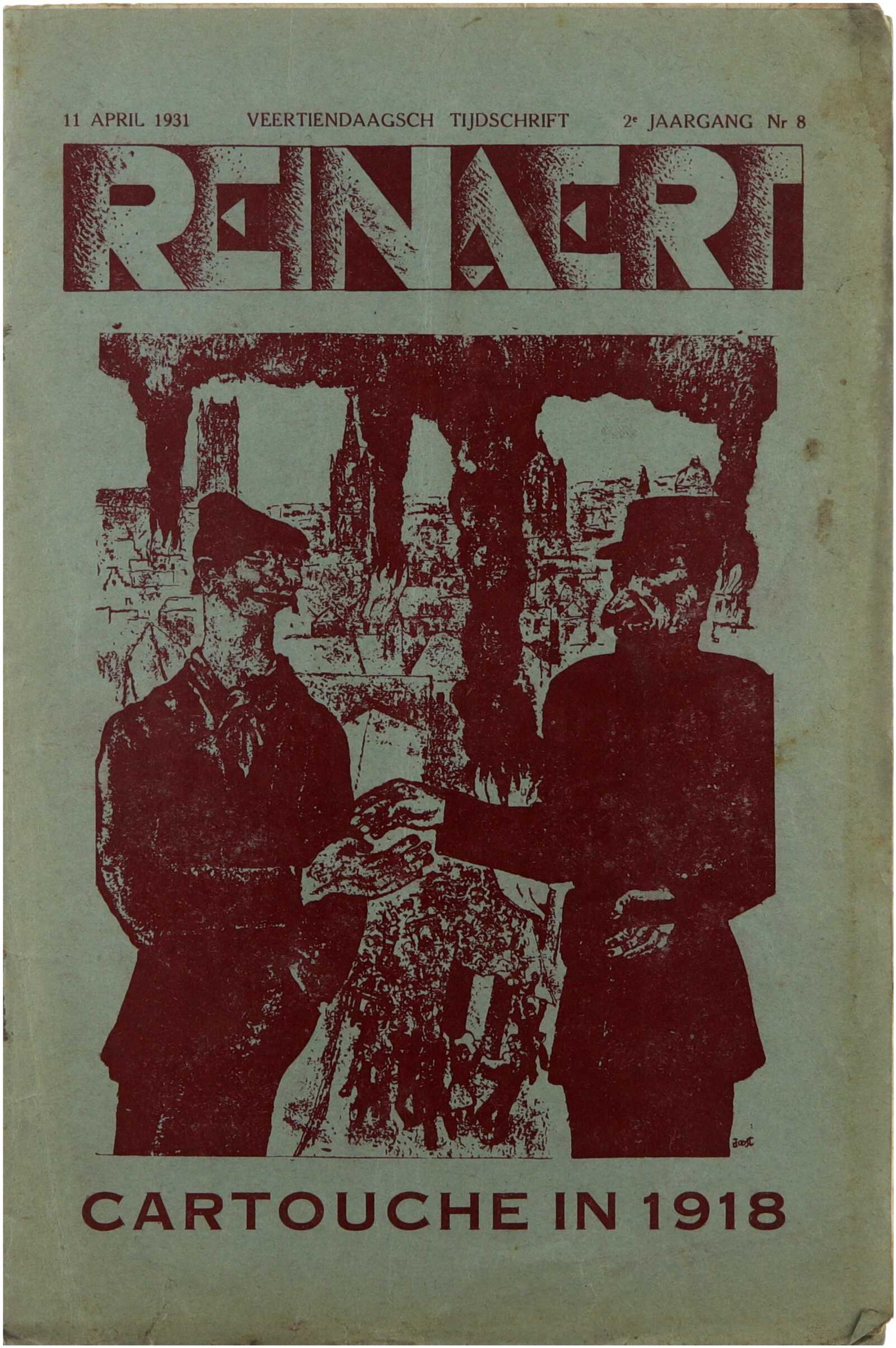 Dit nummer van Reinaert uit 1931, getiteld “Cartouche in 1918”, grijpt terug naar de nasleep van de Eerste Wereldoorlog om politieke afrekeningen, herinneringscultuur en morele veroordeling kritisch te benaderen. In een polemische en ironische toon stelt het blad de manier aan de kaak waarop gebeurtenissen en personen uit 1918 worden ingezet in actuele politieke strijd, met bijzondere aandacht voor selectieve verontwaardiging en historische simplificatie. Het nummer past binnen Reinaerts bredere kritiek op opportunisme, hypocrisie en ideologische instrumentalisering van het verleden binnen de Belgische context en de Vlaamse beweging.