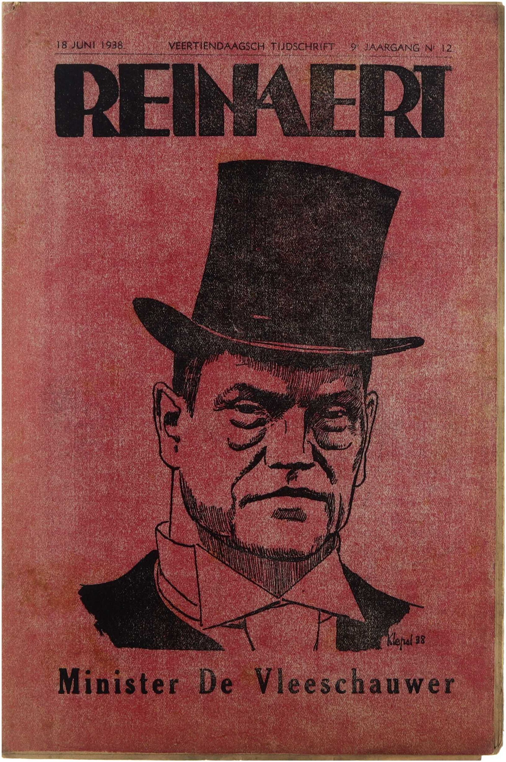 Reinaert. Satiriek tijdschrift. 1938 nummer 12. Minister De Vleeschauwer