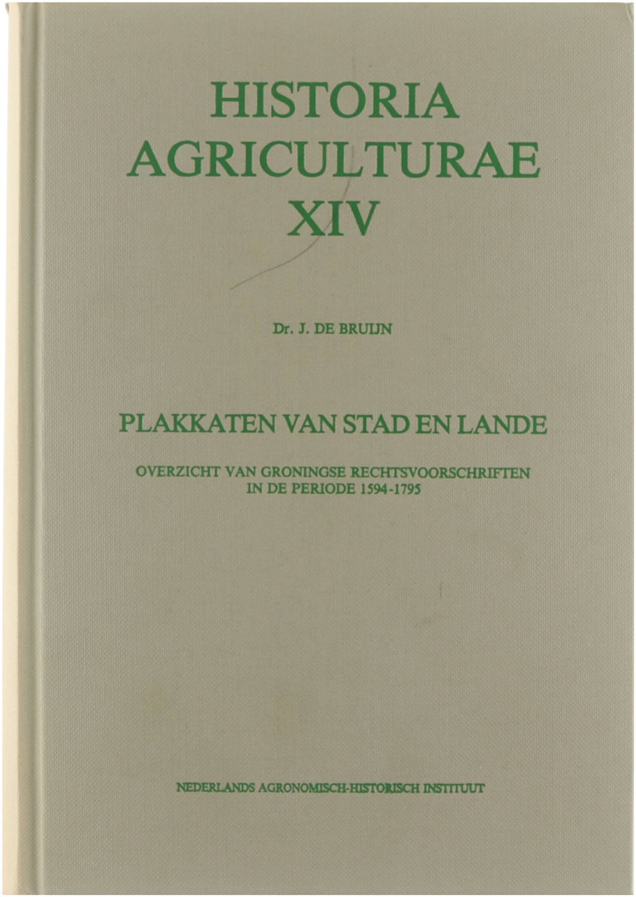 Historia Agriculturae XIV : Plakkaten van Stad en Lande : overzicht van Groningse Rechtsvoorschriften in de periode 1594-1795