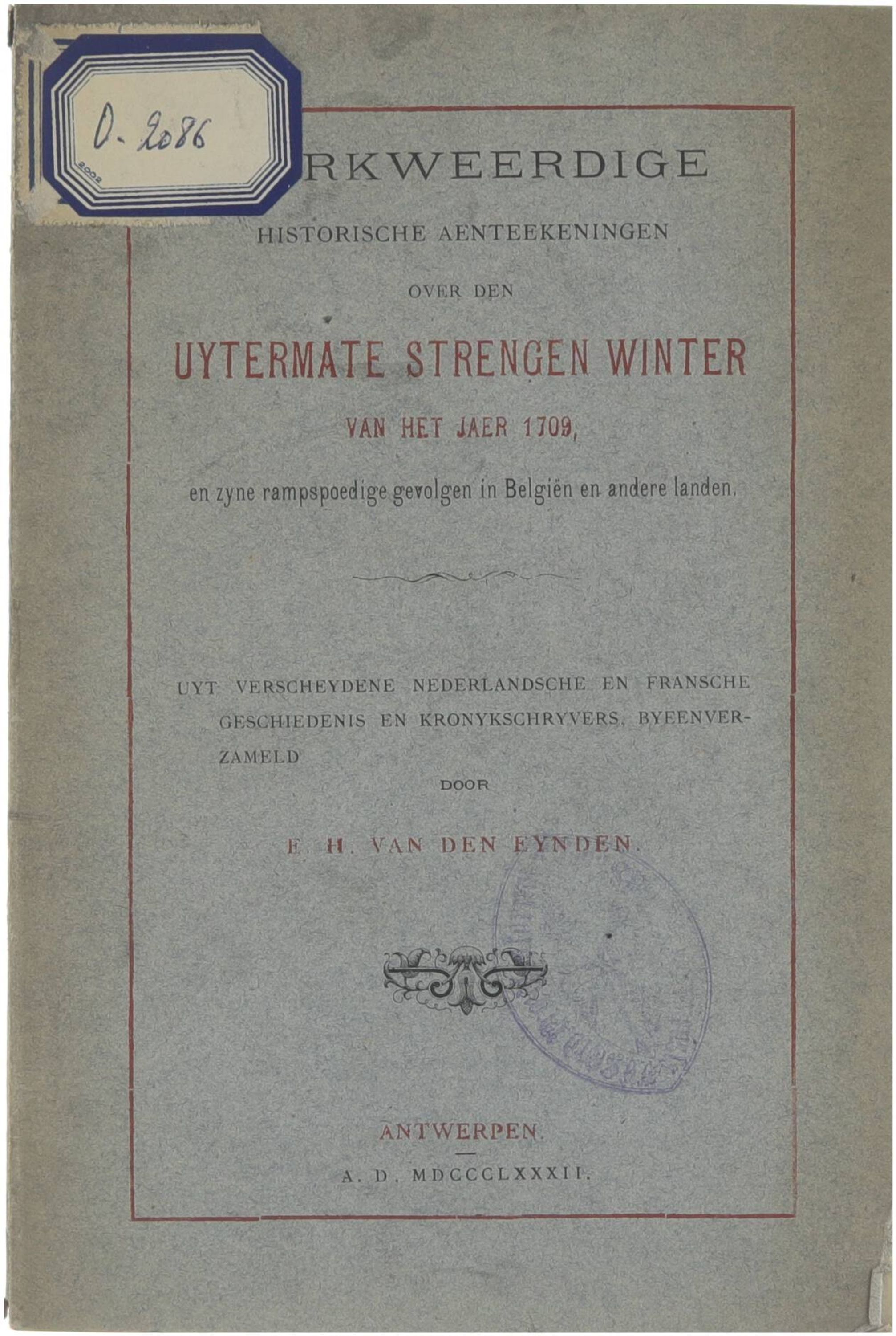 Merkweerdige Historische Aenteekeningen over den Uytermate Strengen Winter van het jaer 1709, en zyne rampspoedige gevolgen in Belgiën en andere landen