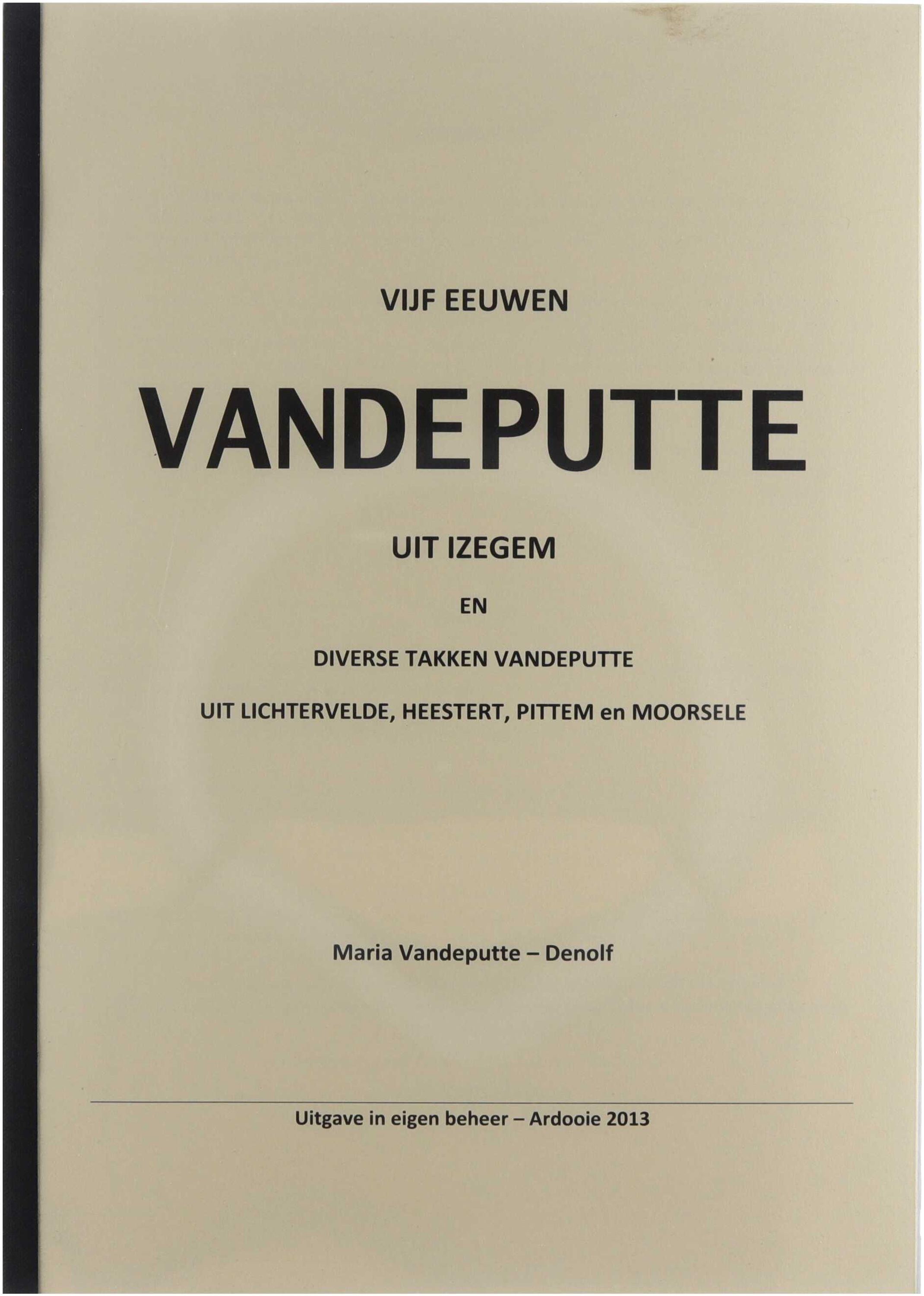 Genealogische en historische studie over een familielijn “Vandeputte” met oorsprong in Izegem door een periode van vijf eeuwen. Daarnaast behandelt het werk diverse afstammelingen of zijtakken van de familie in Lichtervelde, Heestert, Pittem en Moorslede.