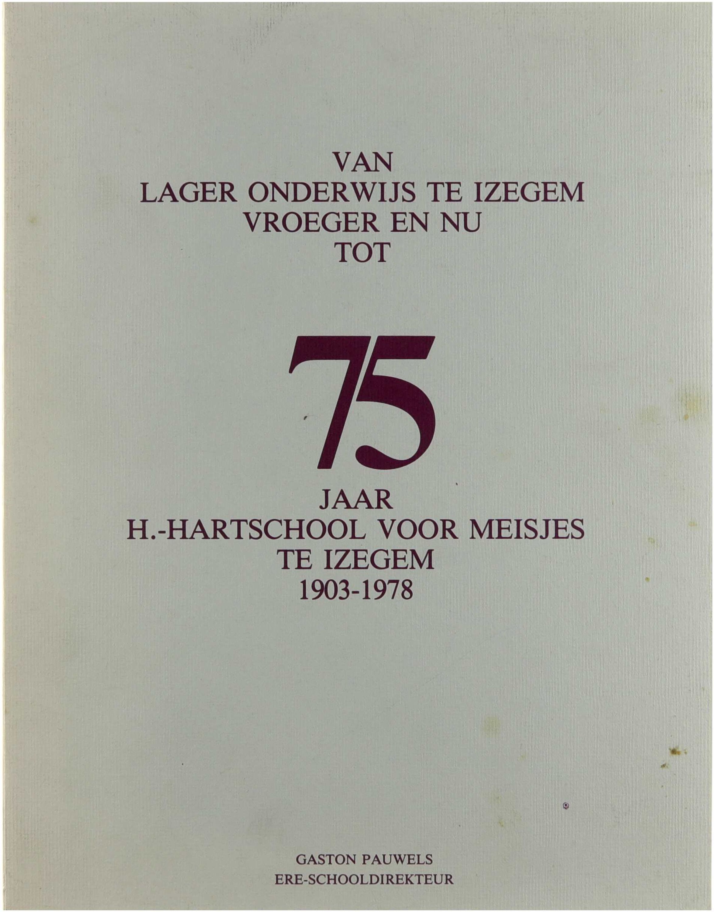 Van Lager Onderwijs te Izegem vroeger en nu tot 75 jaar H. Hartschool voor meisjes te Izegem 1903-1978