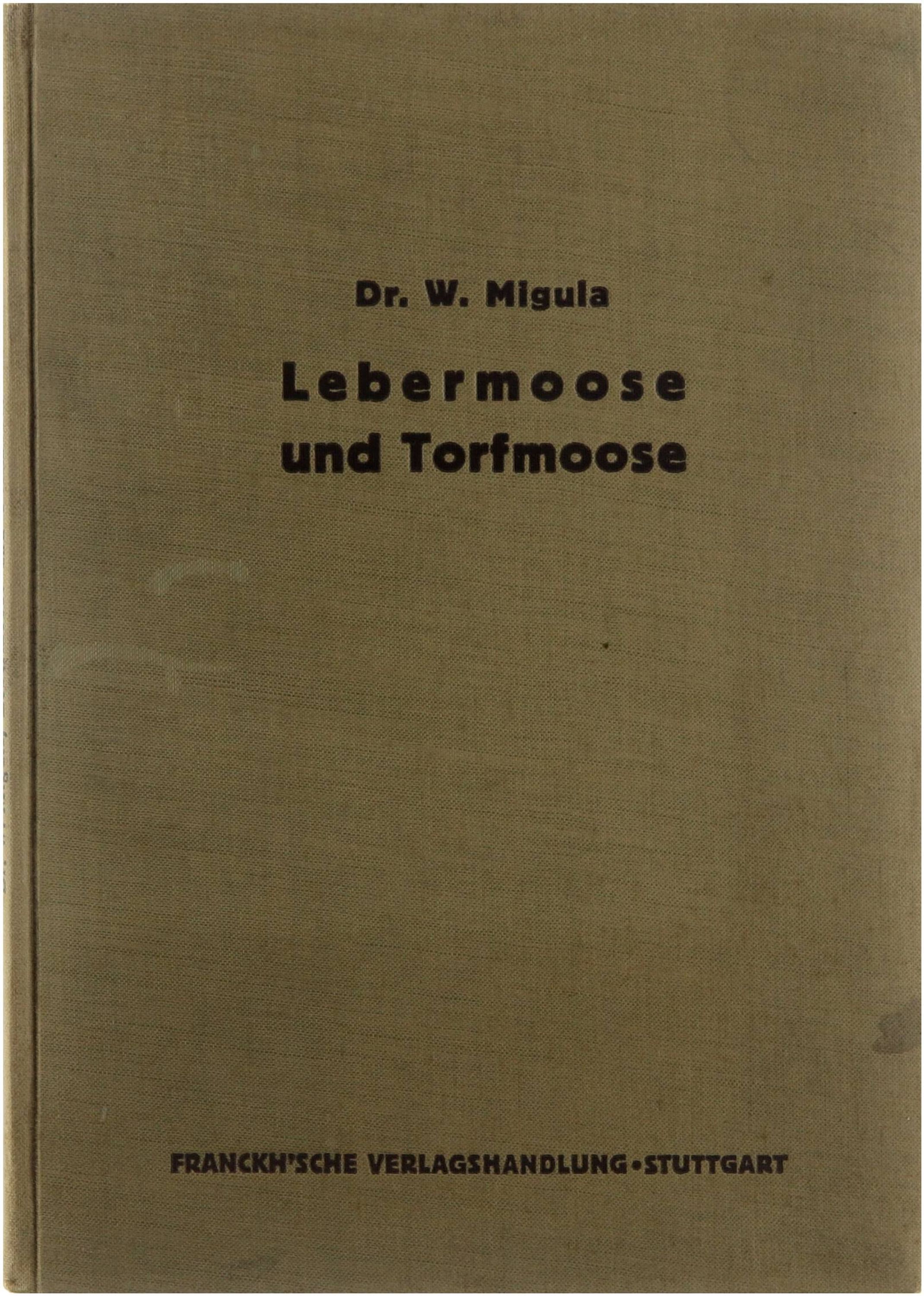 Handbücher für die praktische naturwissenschaftliche Arbeit: Band XXII Lebermoose und Torfmoose Ein Hilfsbuch zum Erkennen, Bestimmen, Sammeln, Untersuchen und Präparieren der am häufigsten vorkommenden Formen von Prof. Dr. W. Migula Eisenach Mit 8 Tafeln 1932 Geschäftsstelle des Mikrokosmos: Franckh’sche Verlagsbuchhandlung, Stuttgart