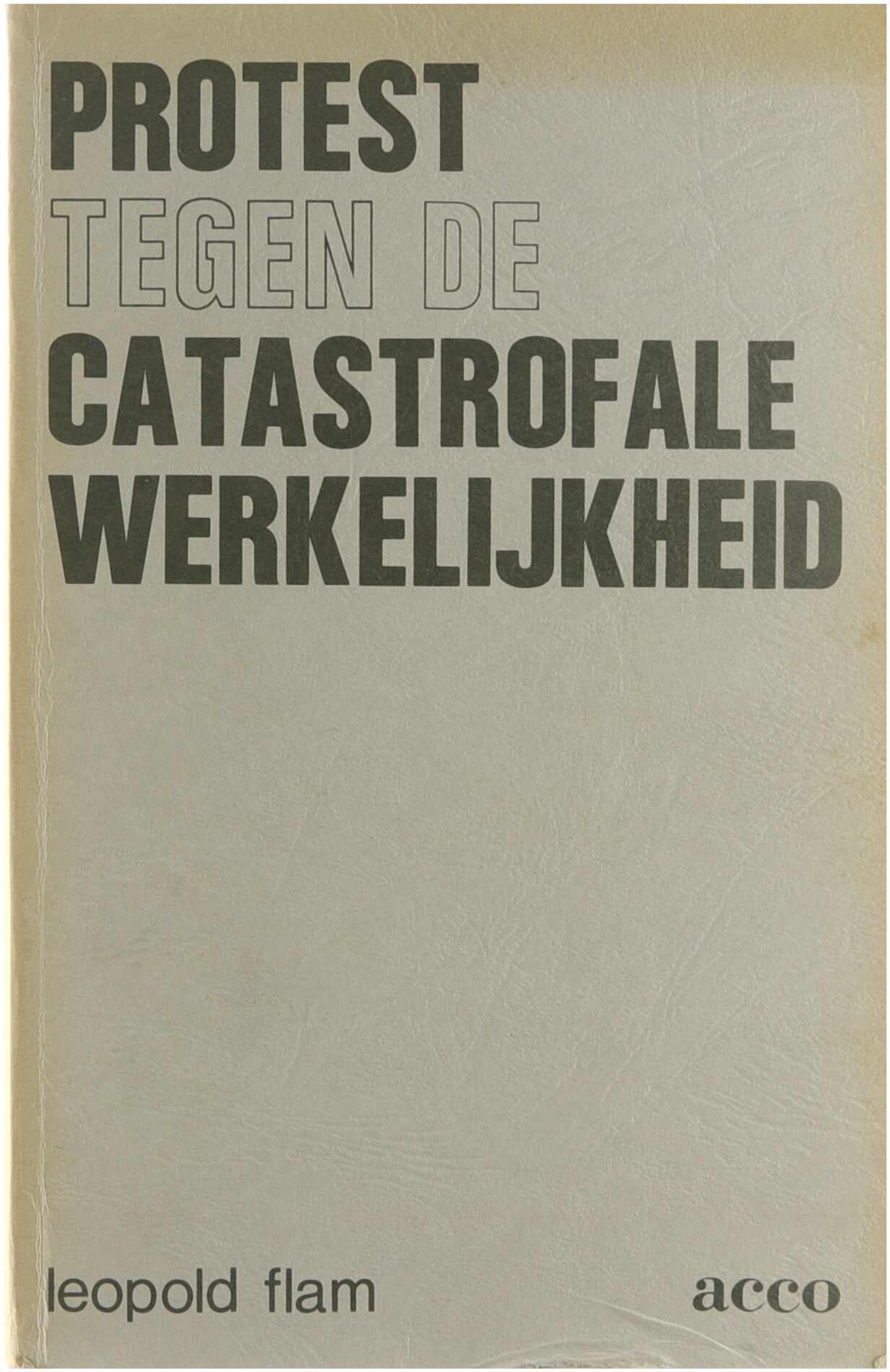 Beschouwingen over de levenshouding van de moderne mens zoals die zich uit in nihilisme en existentialisme waarvan schr. de belangrijkste vertegenwoordigers behandelt. In Protest tegen de catastrofale werkelijkheid gaat het de auteur om de ontbinding van de menselijke werkelijkheid en tevens om een getuigenis (protest) voor haar werkelijkheid. Het fenomeen van de ontbinding of het nihilisme wordt vanuit verschillende profielen belicht. Tussen deze verschillende profielen bestaat geen uitsluitingsbeginsel noch veronderstellen zij onderling het Ware Profiel. In de beschrijving van het Europees nihilisme en het protest voor de menselijke werkelijkheid duiken vreemde gestalten op die allen op een merkwaardige wijze naar een nieuwe subjectiviteit wijzen. Het gaat de auteur om gestalten van het subject, eigenlijk een voortzetting van Gestalten van de westerse subjectiviteit. In dit werk stonden de ecstatische subjectiviteit van het grote individu en de reine subjectiviteit van de eenzaam scheppende enkeling centraal. De grondtoon van deze deinende gestalten is tragisch. In Protest tegen de catastrofale werkelijkheid is daarentegen iets dat fluistert, een handvol gestalten — schaduwen — die wenken naar het omkeerbare van de ontbonden menselijke werkelijkheid. Protest tegen de catastrofale werkelijkheid behoort tot het eerder verschenen werk Ontbinding en protest. Auteur: Leopold FLAM (Antwerpen, 1912) studeerde scheikunde, geschiedenis en filosofie aan de Universiteit te Gent. Van 1947 tot 1957 was hij docent wijsbegeerte aan het E. Vandervelde Instituut te Antwerpen. Van 1954 tot 1969 was hij tevens inspecteur geschiedenis van het secundair onderwijs. Sinds 1956 is Leopold Flam hoogleraar aan de Vrije Universiteit Brussel. Hij is ook voorzitter van de Vlaamse Vereniging voor Wijsbegeerte en van de Filosofische Kring Aurora. In 1960 en 1975 stichtte L. Flam respectievelijk het tijdschrift Dialoog en het tijdschrift Aurora. L. Flam publiceerde tientallen boeken en honderden artikels en bijdragen in tijdschriften. Van L. Flam verschenen bij Acco reeds de volgende boeken : De Bron (1973, heruitgave 1978), De Eenzaamheid (1979) en Gestalten van de westerse subjectiviteit (1979). Verder verschenen nog De Betekenis (Univ. Uitg., 1975), Lectuur van Hegel (Aurora en Univ., 1980), De Kunstenaar (Studiereeks Tijdschrift Univ. Brussel, 1981), De Nieuwe Mens (Univ. Uitg., 1980) en Mors et vita (Univ. Uitg., 1980).
