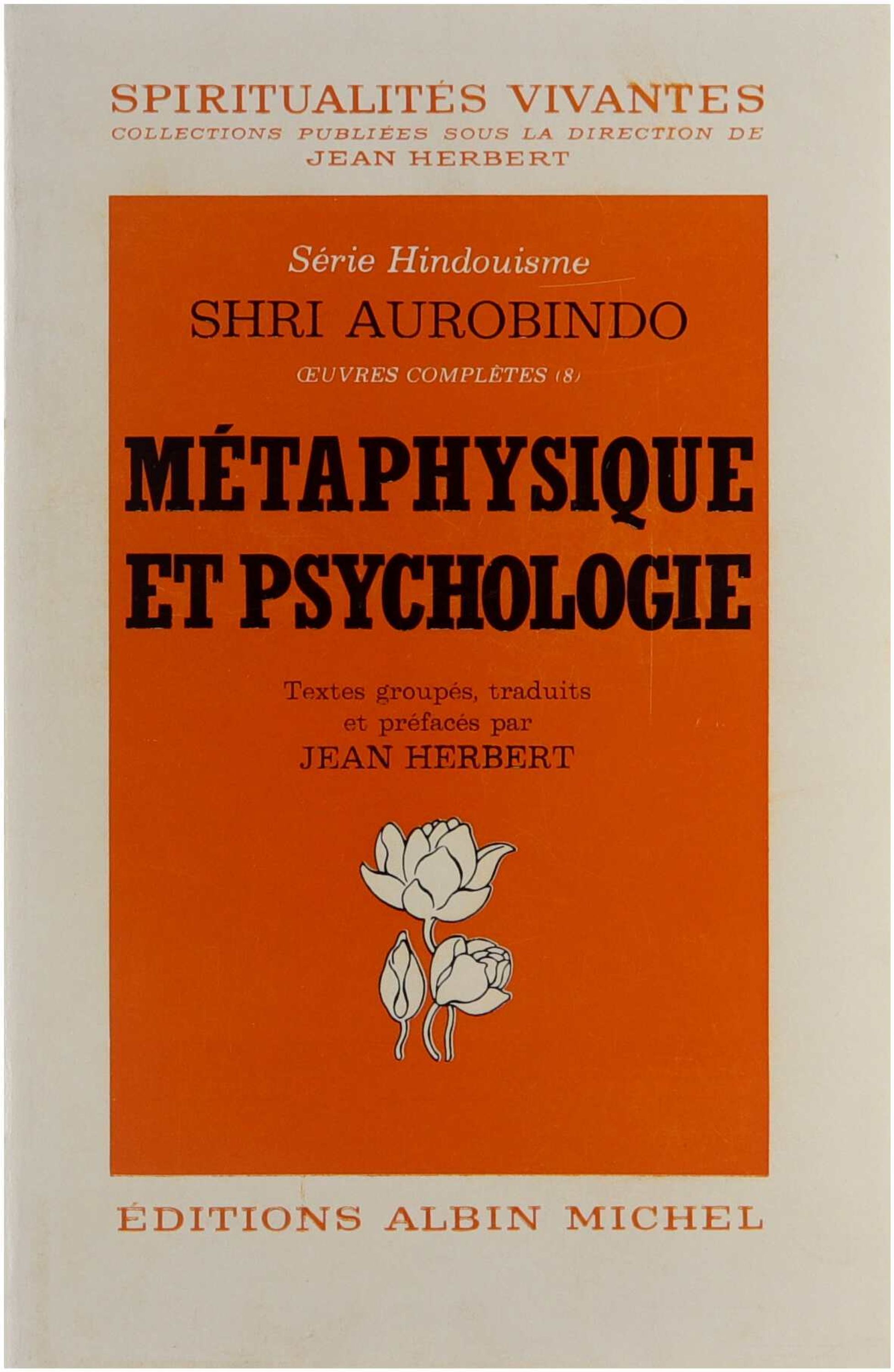 L’œuvre immense de Shri Aurobindo sur la métaphysique, la psychologie et le yoga a déjà été publiée en français pour la plus grande partie (1). Elle a éveillé un vif intérêt non seulement chez les orientalistes, les philosophes, les psychologues et les médecins et dans les milieux religieux, mais aussi dans toutes les couches du public. Or son ampleur même fait qu’il est difficile d’y retrouver les passages relatifs à un même sujet qui sont dispersés dans les divers volumes. C’est pourquoi Jean Herbert, le traducteur attitré de Shri Aurobindo, a décidé de composer deux volumes d’anthologie classée méthodiquement. Le premier de ces volumes, Métaphysique et Psychologie, comprend plus de 1 500 extraits puisés dans plus de 50 volumes, dont tous ceux déjà traduits en français — y compris les trois importants volumes de « Lettres » maintenant épuisés — et aussi dans de nombreuses plaquettes qui n’existent qu’en anglais. Les principales sections sont intitulées : Sources et antécédents, Vérité et complémentarités, L’évolution, Le Divin, Modes et plans de la nature telle qu’elle nous apparaît, Les plans cosmiques supérieurs, De l’homme réel à l’homme apparent, L’homme dans le monde et la société, Le physique et le vital chez l’homme, Le mental actuel chez l’homme, Au-delà de l’être humain mental. Il y est joint une importante préface de Jean Herbert, qui situe ces divers sujets les uns par rapport aux autres, et un schéma de l’analyse psychologique de l’homme selon Shri Aurobindo. Ce volume constitue l’outil de travail indispensable pour qui veut étudier l’enseignement de Shri Aurobindo. Le volume suivant sera une anthologie de cet enseignement sur le yoga.