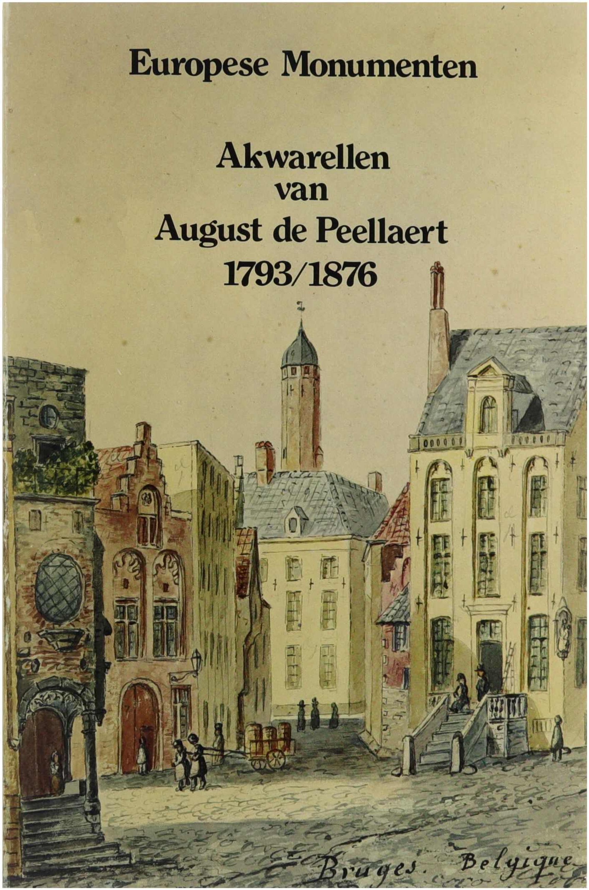 Tentoonstellingscatalogus ter gelegenheid van de tentoonstelling “Europese Monumenten. Akwarellen van August de Peellaert 1793-1876” in het Groeningemuseum te Brugge (5 juli - 31 augustus 1975). De catalogus bevat een uitgebreid overzicht van de aquarellen van August de Peellaert, met reprodukties, beschrijving van elk werk, historische context van de monumenten die afgebeeld zijn, en artistieke beschouwingen. Het werk richt zich op de waarde van de aquarellen als document van Europees uitzonderlijk erfgoed en op de stijl, techniek en thematiek van De Peellaert.