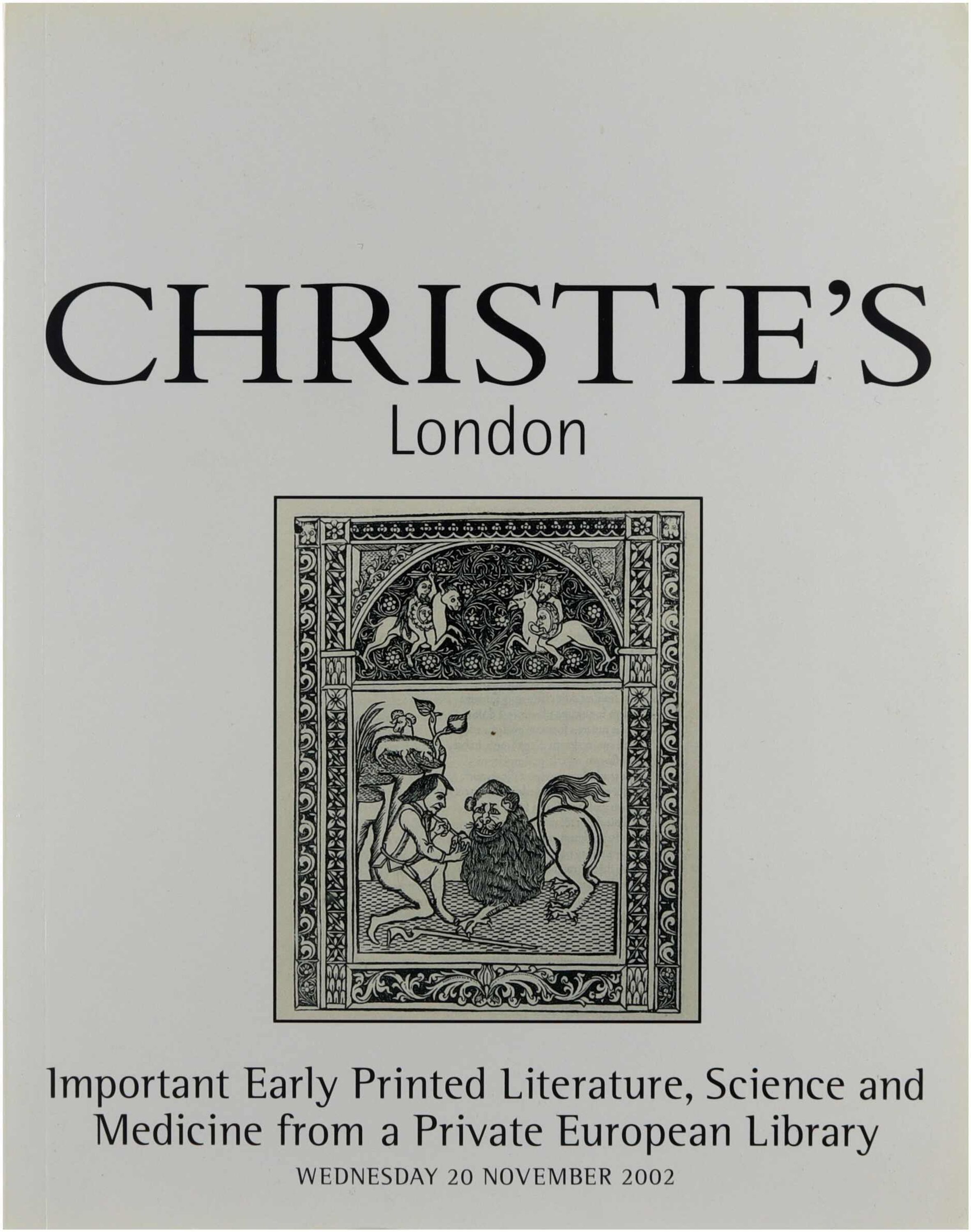 Auction catalogue presenting a significant selection of early printed books, scientific works and medical treatises from a private European collection. The catalogue includes detailed lot descriptions, bibliographical notes, provenance information and plate illustrations highlighting rare works from the incunable period to the early modern era, reflecting major developments in learning, science and book history.