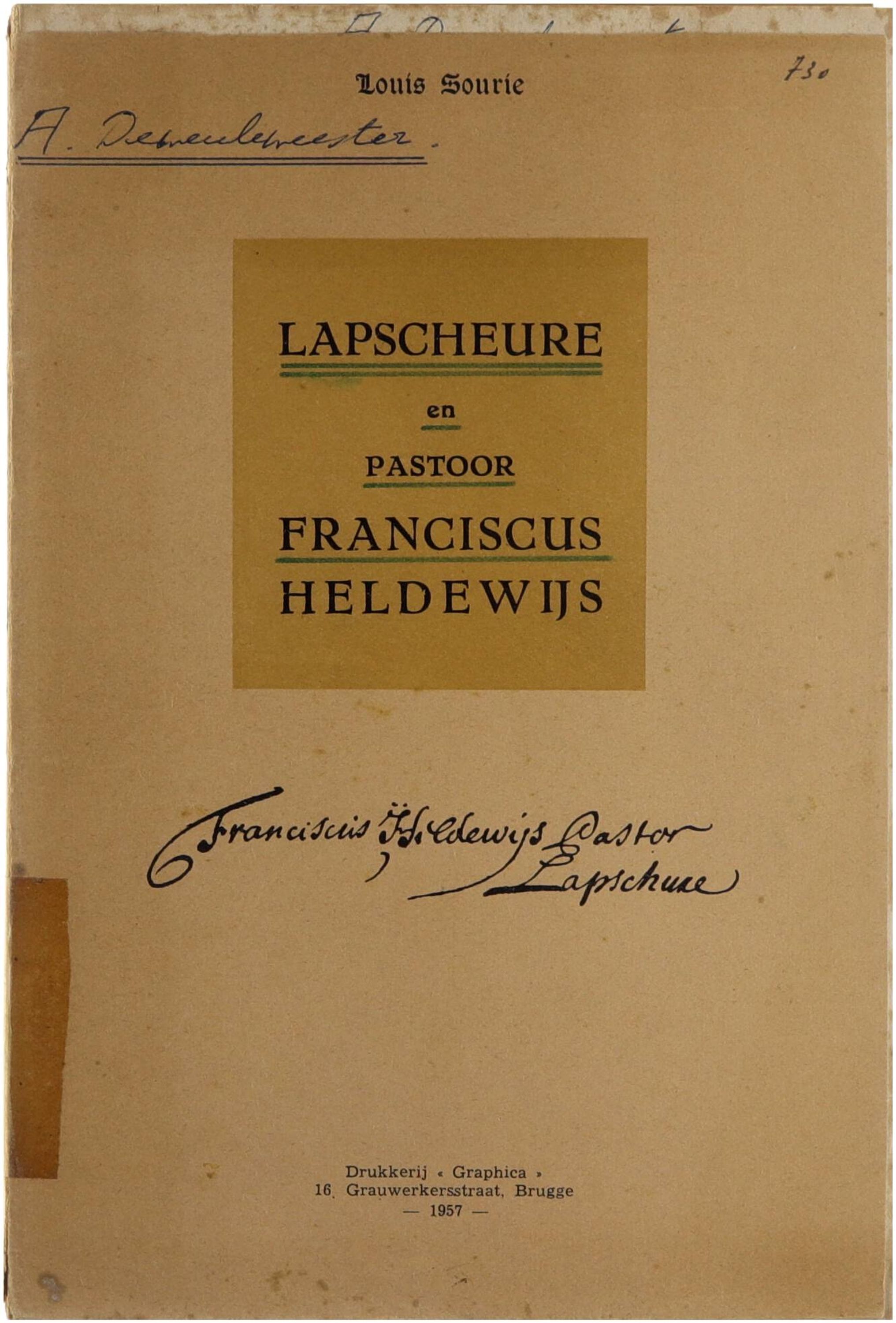Lapscheure en pastoor Franciscus Heldewijs (overdruk uit de Brugsche courant (1 juni - 31 juli 1957)