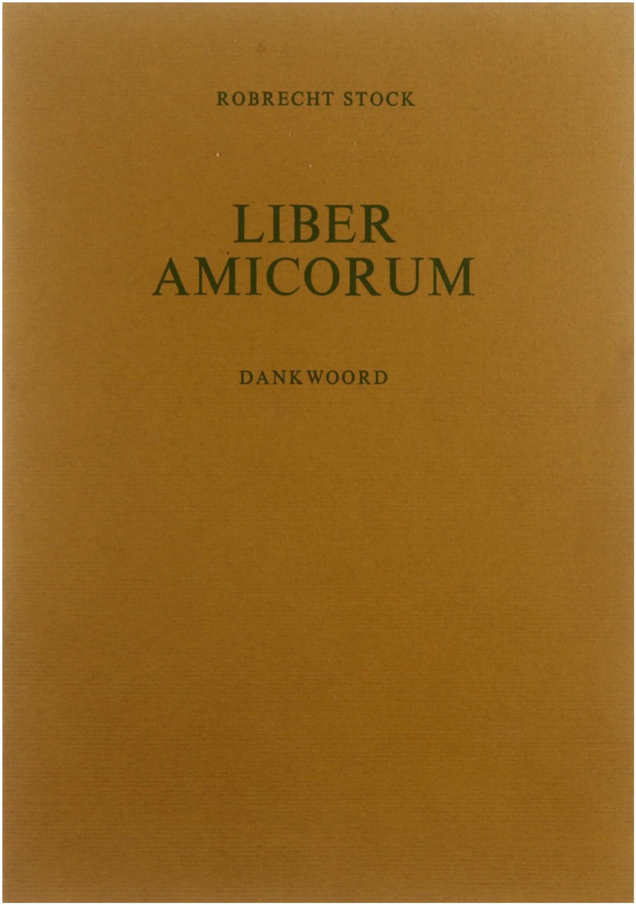 Dit aparte boekje bevat het uitgebreide dankwoord van dr. Robrecht Stock naar aanleiding van het aan hem opgedragen huldeboek Liber amicorum. In deze tekst richt hij zich tot de redacteuren en alle auteurs die aan de bundel hebben meegewerkt, bedankt hij hen uitdrukkelijk voor hun bijdragen en steun, en blikt hij terug op zijn loopbaan in onderwijs, theologie en kerkelijk leven. Het dankwoord heeft het karakter van een persoonlijke, soms beschouwende terugblik, waarin Stock zijn waardering en vriendschap voor de verschillende medewerkers verwoordt en het huldeboek in de context van zijn intellectuele en pastorale werk plaatst.