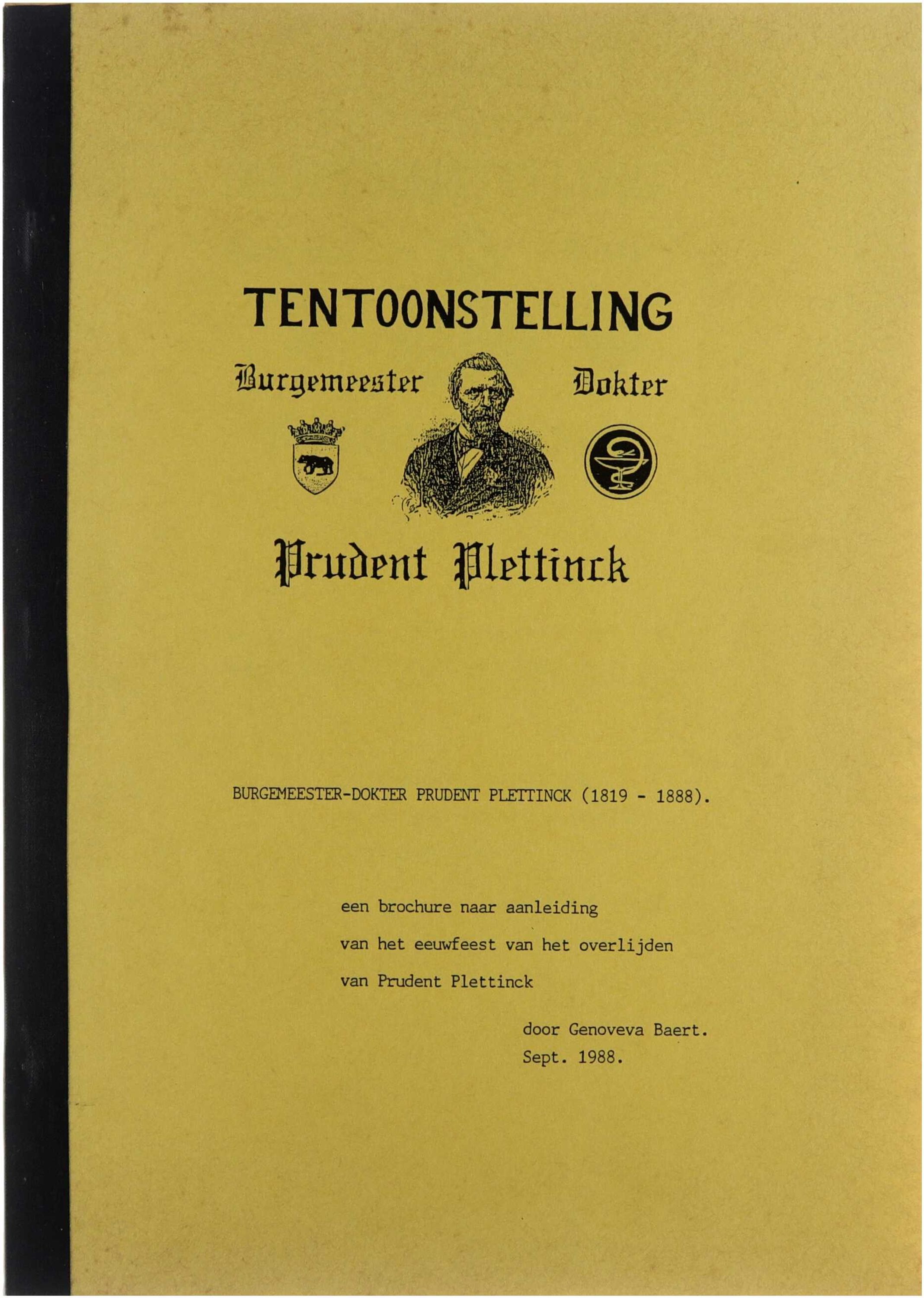 Tentoonstelling Burgemeester dokter Prudent Plettinck (1819-1888). een brochure naar aanleiding van het eeuwfeest van het overlijden van Prudent Plettinck